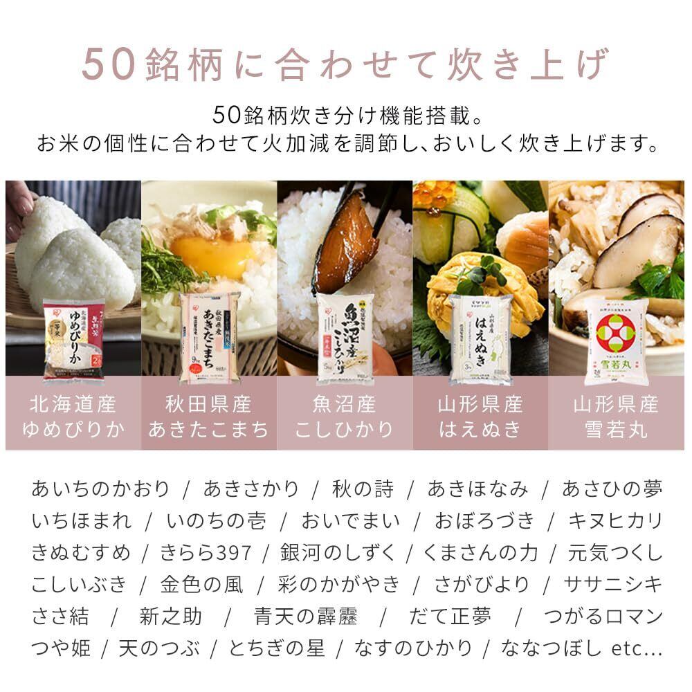 ✨【手軽に美味しいご飯が楽しめる!】この、アイリスオーヤマの炊飯器は、最大5.5合のご飯を一度に炊けるINO式設計で、特に一人暮らしの方や少人数の家庭に最適です。お米の種類や好みに応じて、50銘柄の炊き分けが可能で、毎日のお食事をより充実させます。