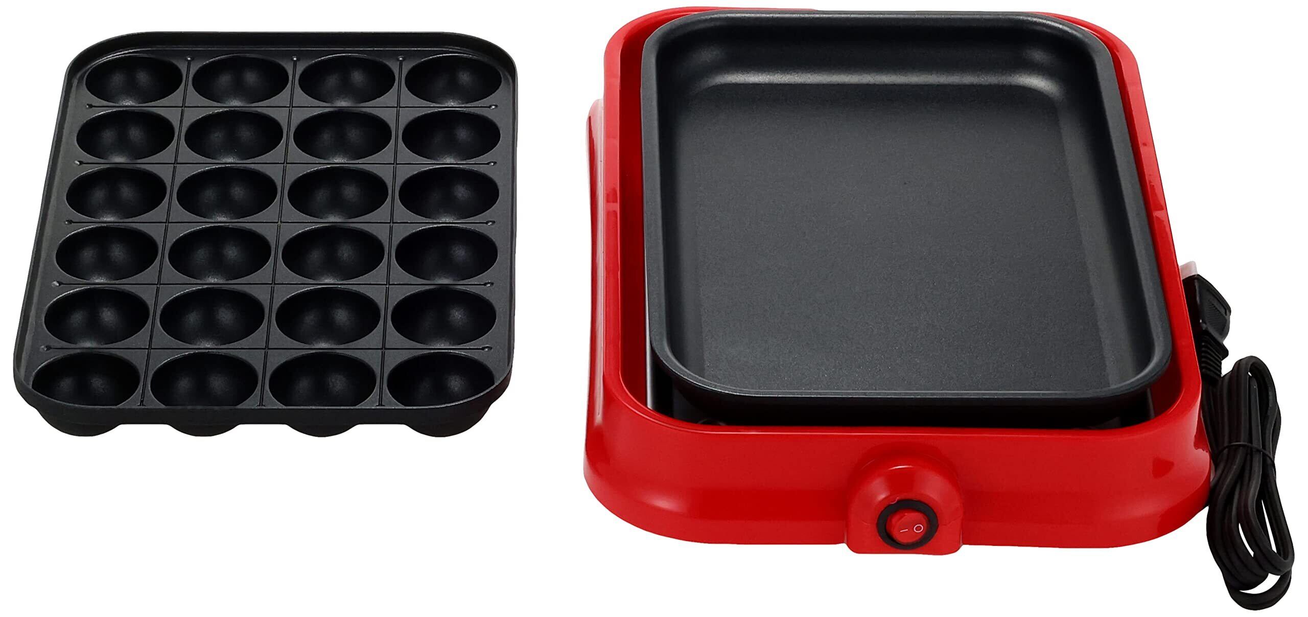 アイリスオーヤマ たこ焼き器 着脱式 2WAY (たこ焼きプレート 24穴 平面プレート) レッド PHP-24W-R