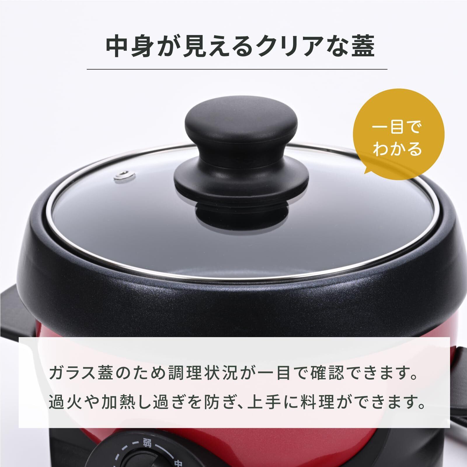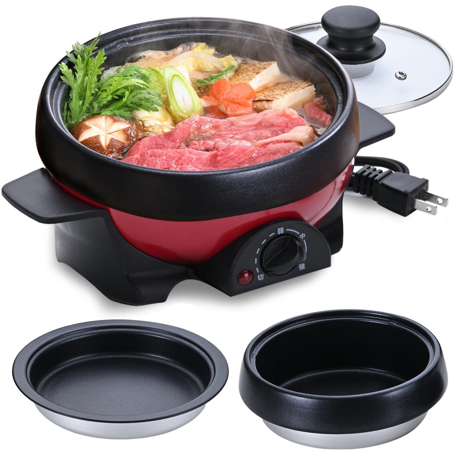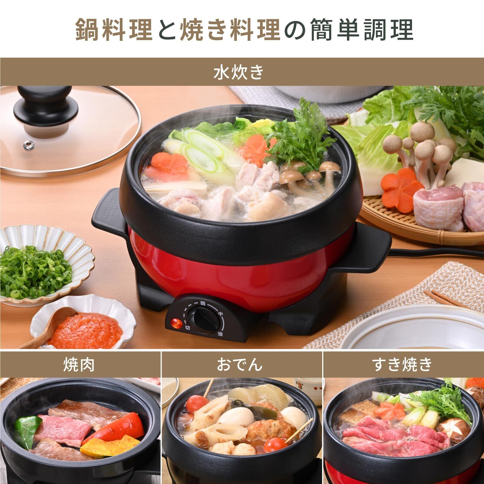 \【◆アビテラックス】【電気鍋】【グリル鍋】【電気ミニプレート】【1人用】【1台2役】【煮る】【焼く】【小型】【一人暮らし】【深鍋】【おしゃれ】【着脱式】【丸洗い】【フッ素加工】【レッド】【abitelax】/自宅で手軽に多彩な料理を楽しむための最適な一人用電気鍋がここに!