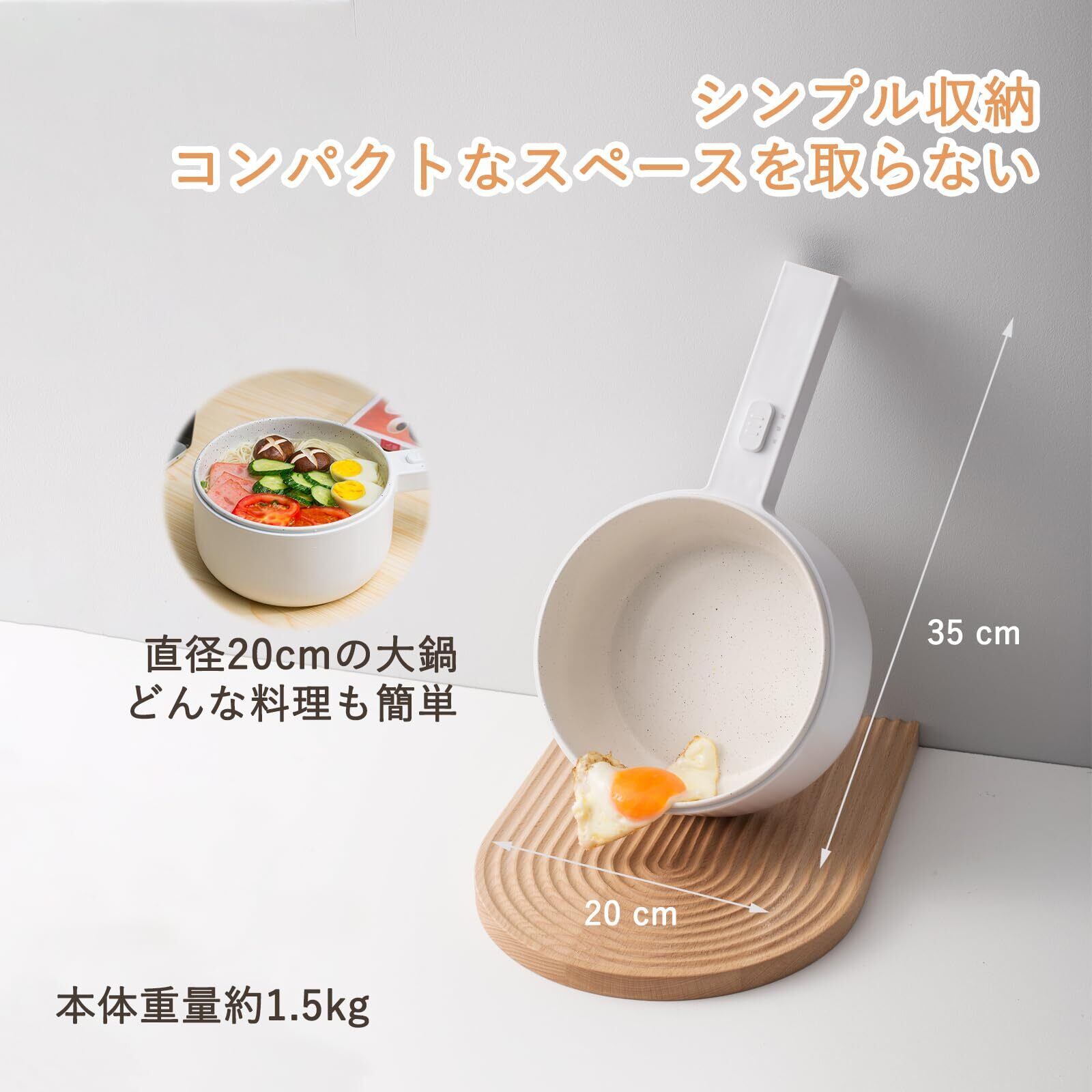【小型便攜】この鍋は小さくて携帯しやすく(35×20×14cm)、軽く(1.1kg)、可動式電源ケーブル付属しています。コンパクトなキッチン、オフィス、寮に適していますし、旅行やキャンプの時に持ち運ぶこともできます。