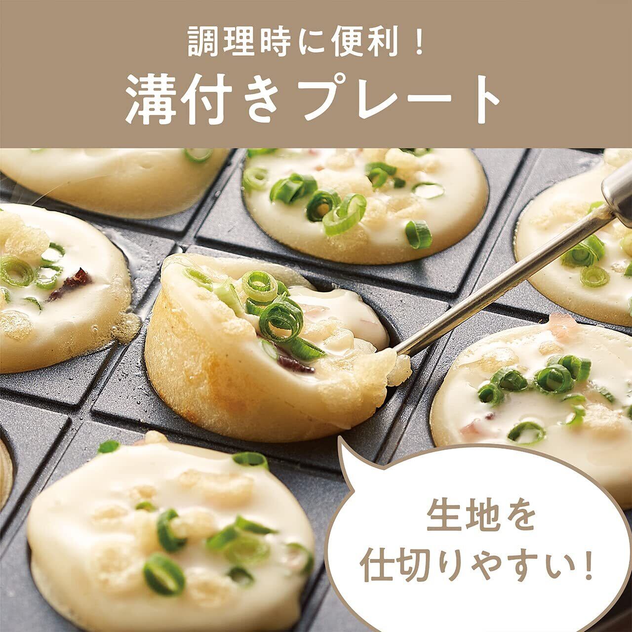 コイズミ(Koizumi) モノクローム たこ焼き器 たこ焼きメーカー 12穴 溝付きプレート フッ素コーティング お手入れ 簡単 卓上 コンパクト ベージュ KTM-0700/C