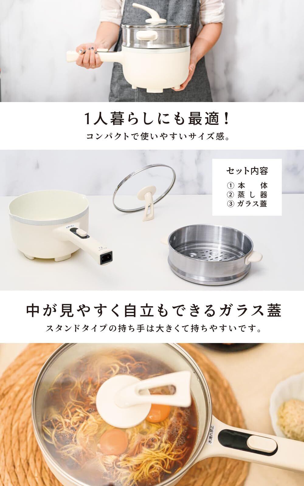 \【◆every U.】【電気鍋】【蒸し器付き】【セラミックコーティング】【一人用】【片手電気鍋】【一人暮らし】【一人用鍋】【電気調理鍋】【グリル鍋】【鍋】【ラーメン】【目玉焼き】【うどん】【炒めもの】【蒸し料理】【温度調節】【多機能】【車中泊】【2.0L】/一人用のこだわりデザイン!多様な料理が楽しめる電気鍋が登場!