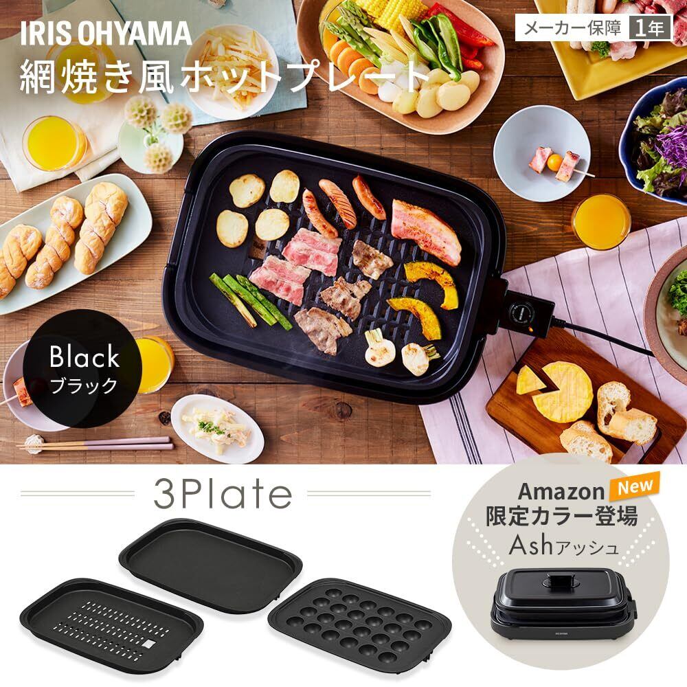 アイリスオーヤマ(IRIS OHYAMA) ホットプレート ブラック 網焼き風ホットプレート 3枚焼き シンプル 焼肉 たこ焼き IHA-A30-B