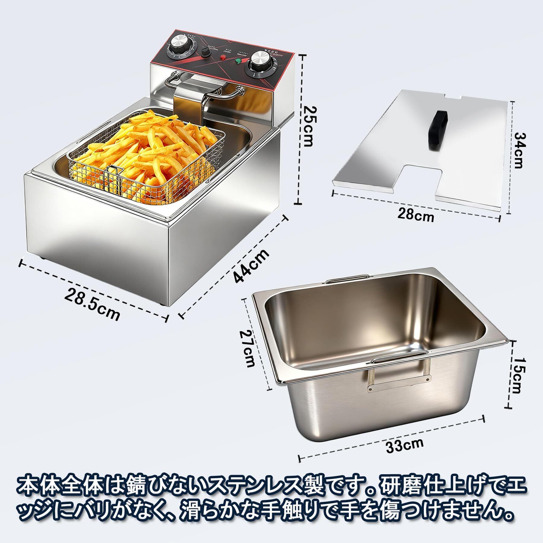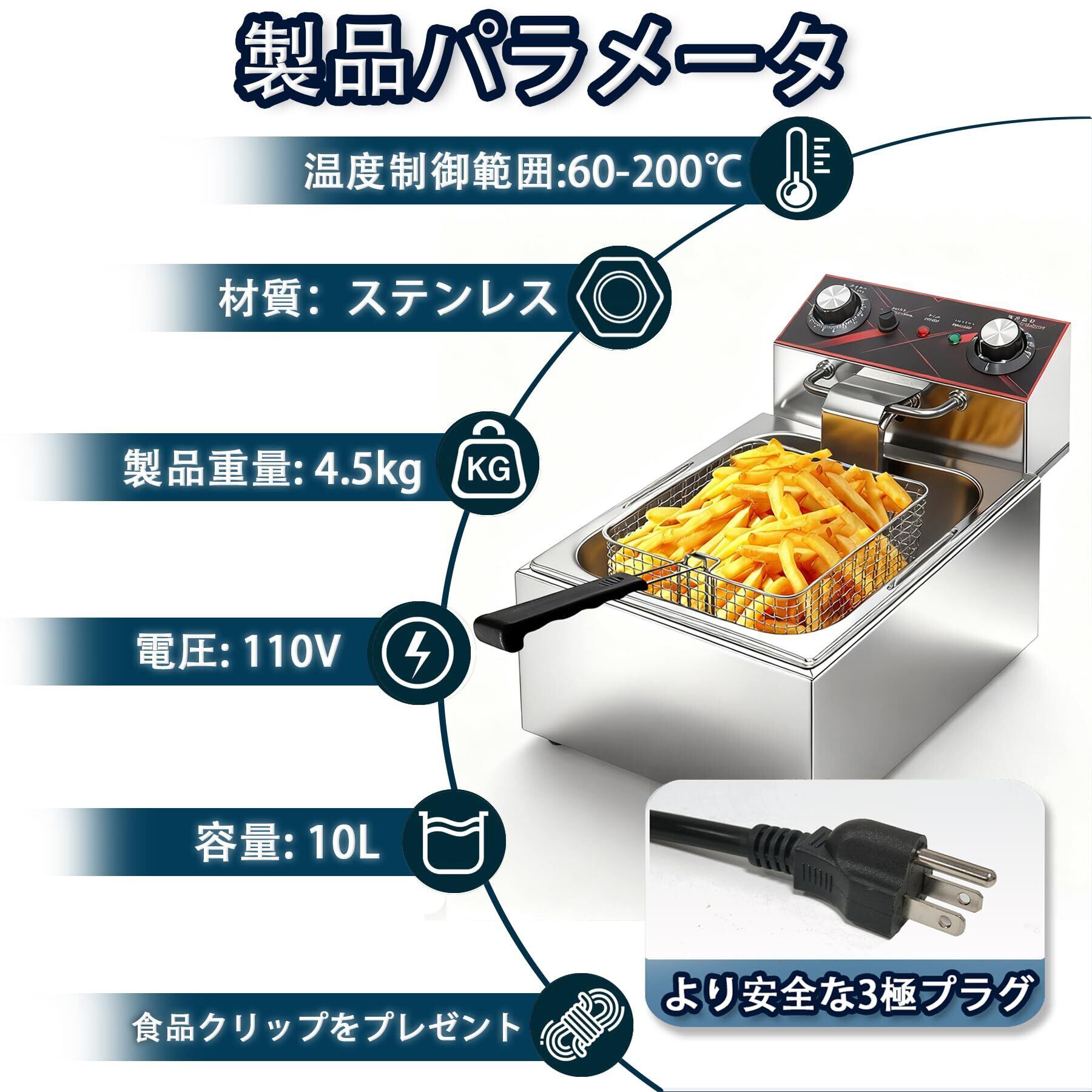電気フライヤー 家庭用 ステンレス製 10L 大容量 温度調節 タイマー付き 業務用も可 揚げ物 天ぷら 日本語説明書付き