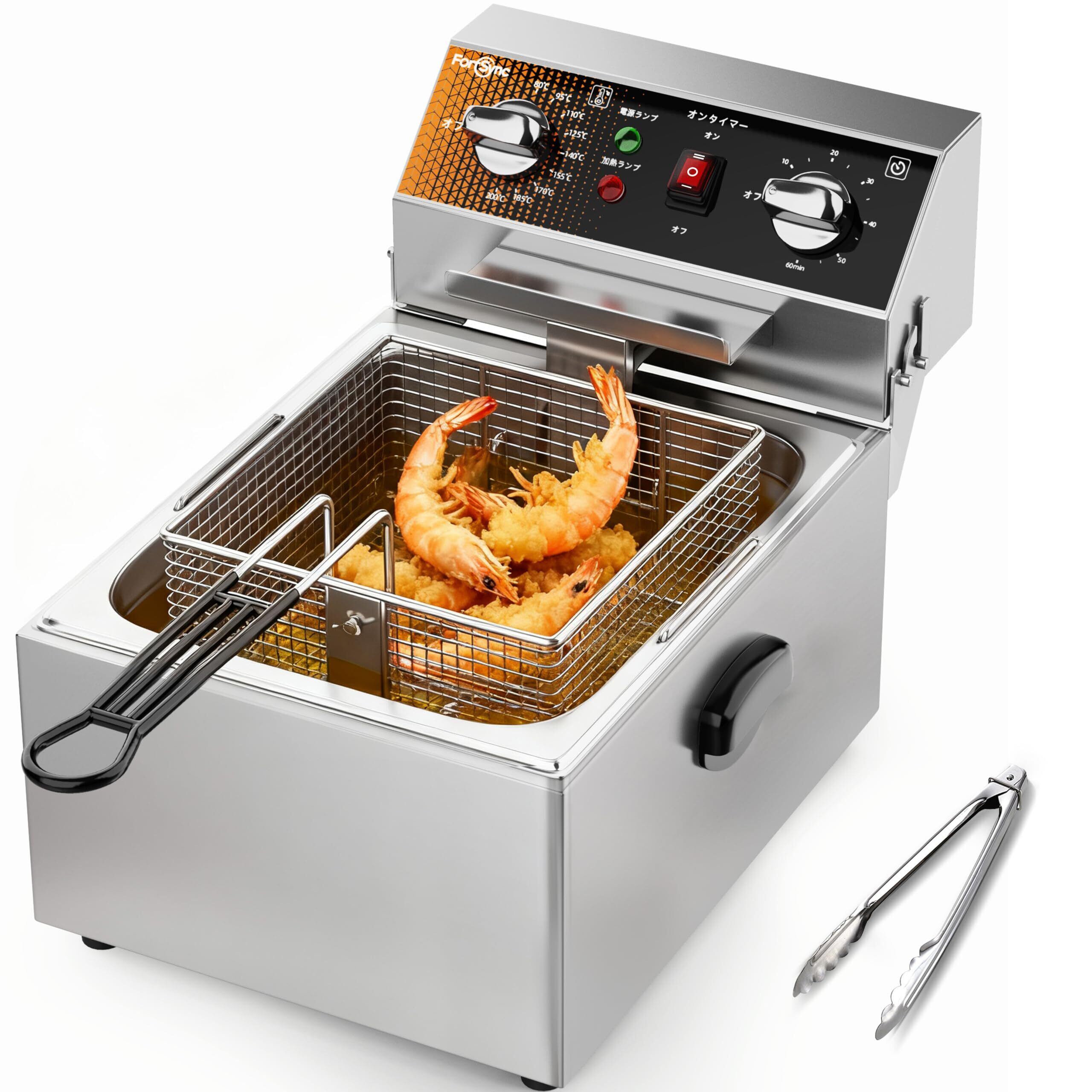 電気フライヤー 業務用 タイマー機能 卓上フライヤー 80-200℃温度調節 フライヤー 家庭用 10L 大容量 省エネ 揚げ物器 日本語説明書付き 揚げ物や天ぷら等に(100/110V)