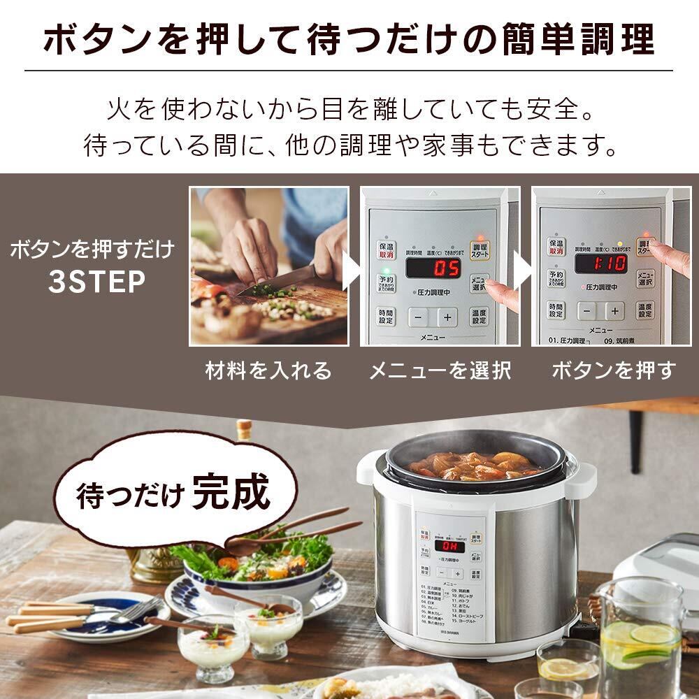 アイリスオーヤマ 電気圧力鍋 圧力鍋 6L 低温調理可能 予約調理対応 ケーキも作れる メーカー付き ホワイト PC-EMA6-W