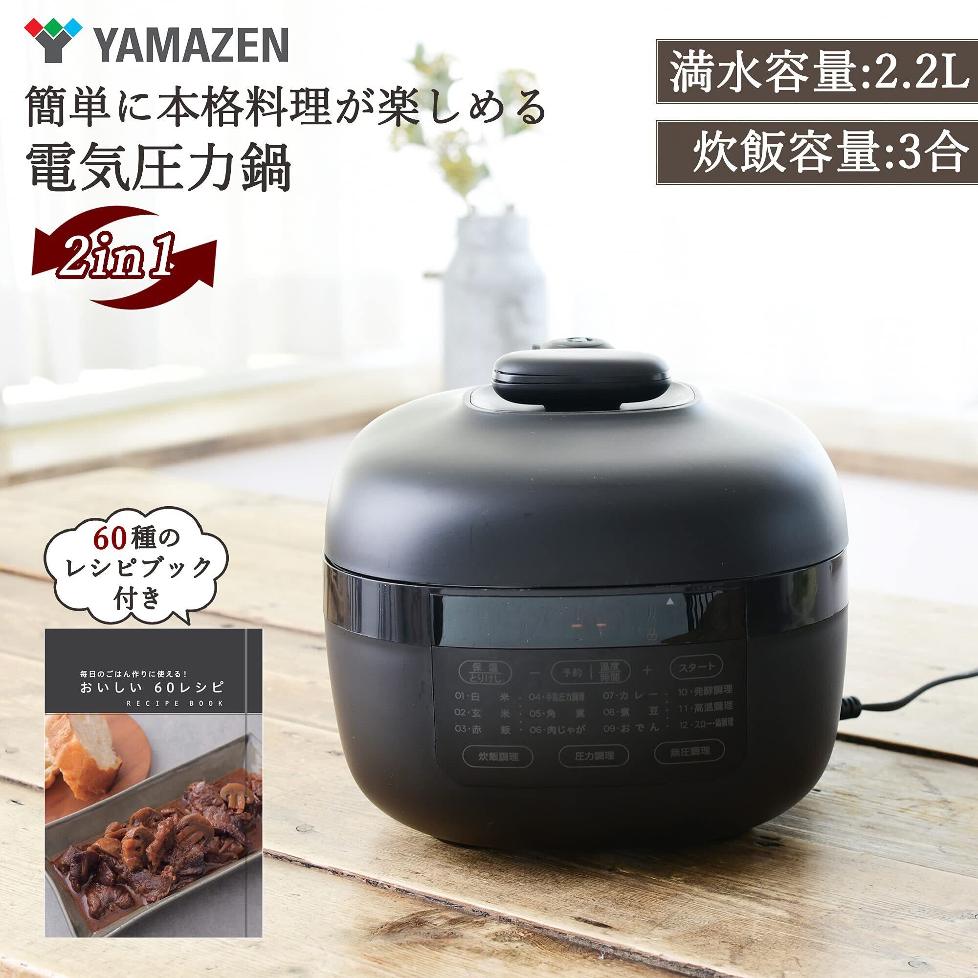 [山善] 電気圧力鍋 2.2L 一人暮らし 二人暮らし 2WAY仕様 調理モード6種類 (圧力/炊飯/発酵/無水/鍋/スロー調理) 予約 保温 60種レシピブック付き ブラック EPCB-M220(B)
