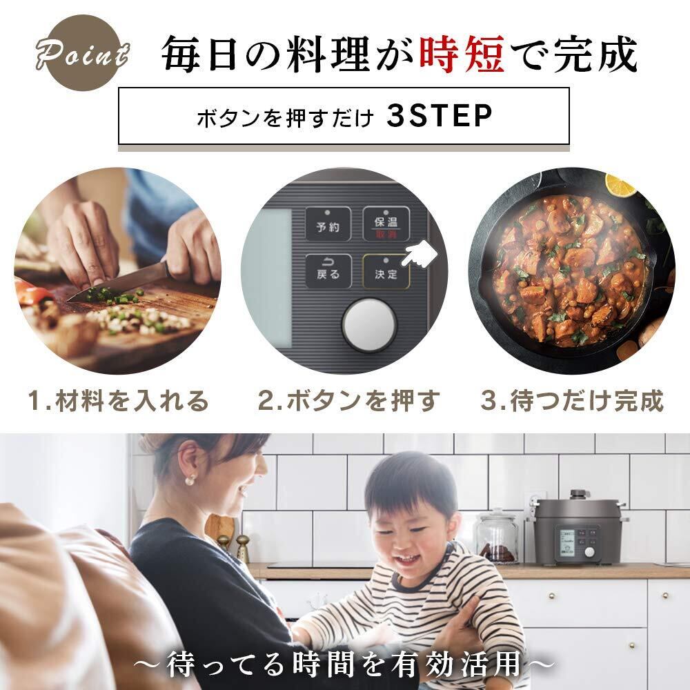 ✨手軽に使えるボタン操作。火を使わないため、安全に調理が可能で、忙しい日の夕食やお子様の料理にも安心です。特に初心者の方でも簡単に美味しい料理が作れます。
