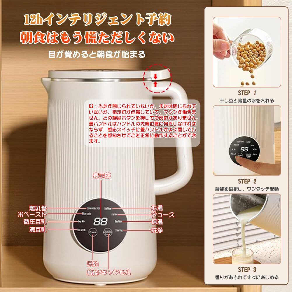 ✨この豆乳メーカーは、12時間前に予約設定ができ、いつでも手軽にお好みの飲み物や食品を楽しむことができます。毎朝のスムージーや、家族で楽しむおかゆなど、幅広いシーンに対応可能です。
