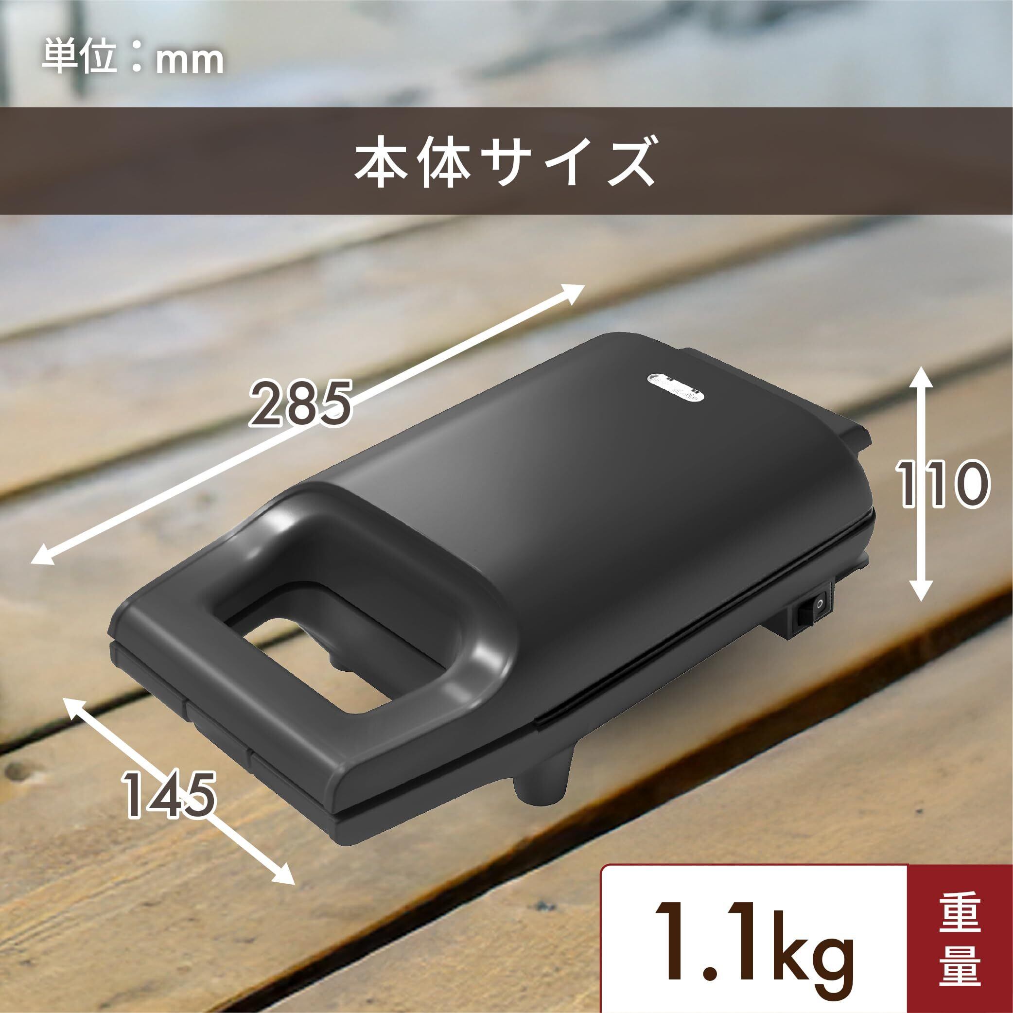 [山善] 具だくさん 耳付きで焼ける ホットサンドメーカー 一人暮らし 新生活 ブラック YSB-S420(B)