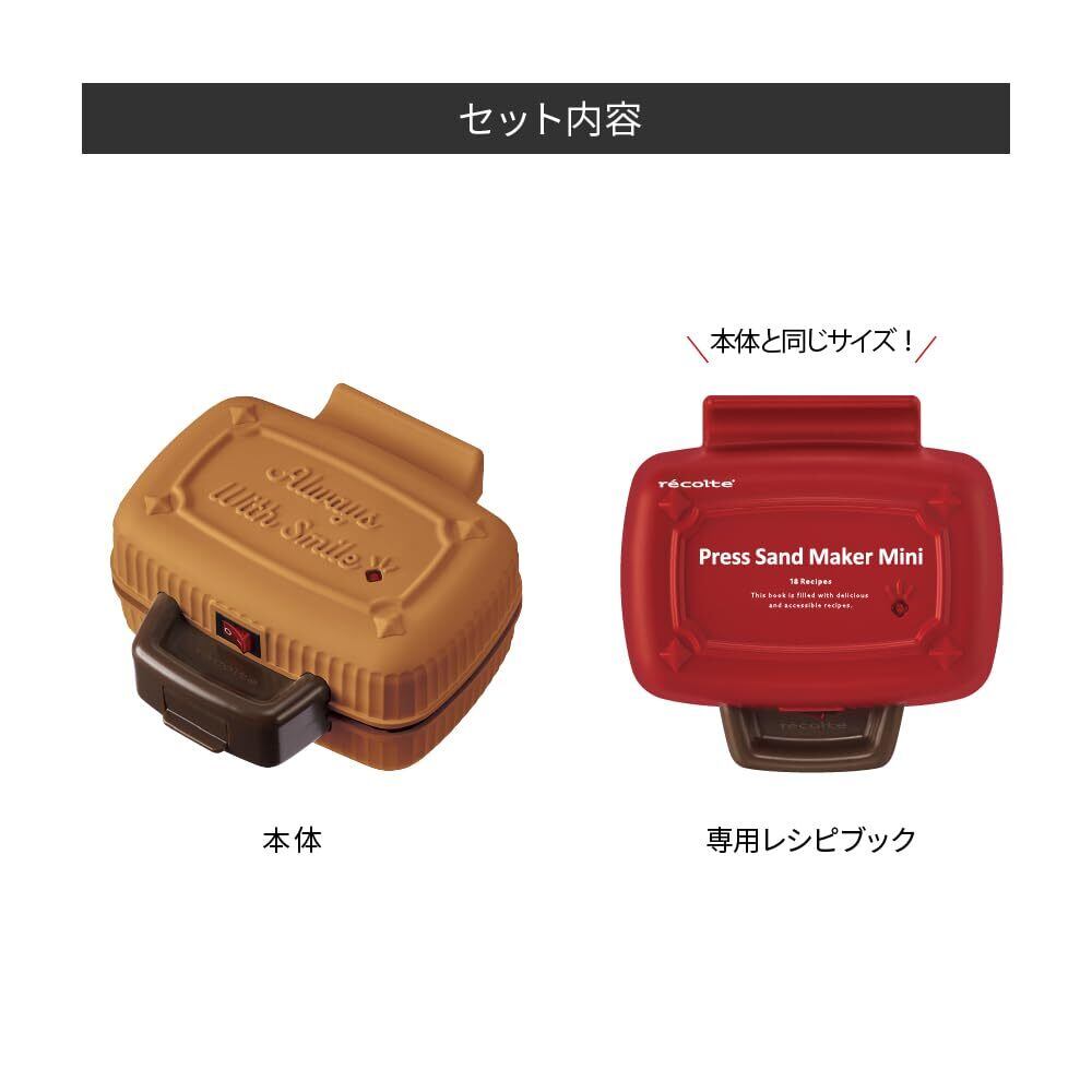 recolte レコルト プレスサンドメーカー ミニ ホットサンドメーカー 電気式 1枚用 耳まで焼ける かわいい コンパクト 使い方簡単 耳圧着 レシピ本付 一人暮らし ジンジャークッキー RPS-3(BR)