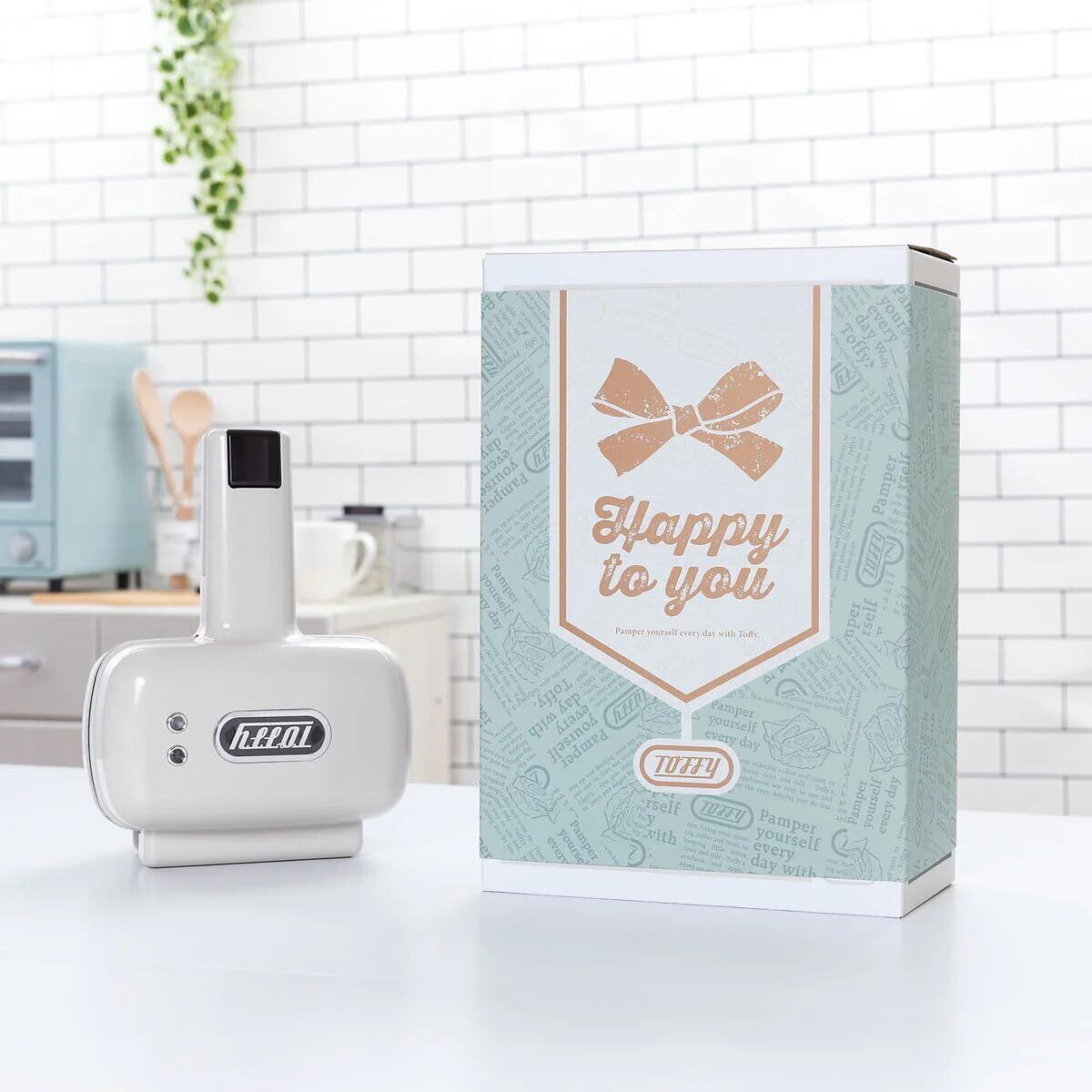 一枚の食パンでホットサンドがつくれる「Toffy ハーフホットサンドメーカー<プレート交換式>」を Toffyらしいかわいいデザインのスリーブでラッピングした直営店限定ギフト。 お誕生日や結婚、新生活のお祝いなど、大切なシーンをToffyでお祝いしませんか?