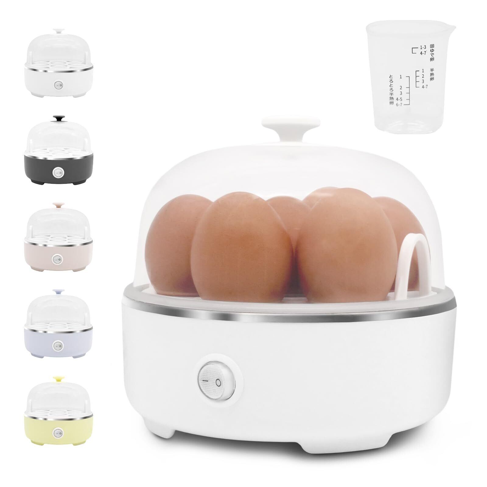 ゆで卵メーカー 自動 最大7個 レンジ不要 固さ調節可能 電熱式 ゆで卵器 メーカー ゆで卵調理器 蒸し器 とろとろ卵 半熟卵 固ゆで卵 ゆでたまご ゆで玉子 煮卵 時短 調理家電 簡単 ホワイト プラス30日延長カード付き