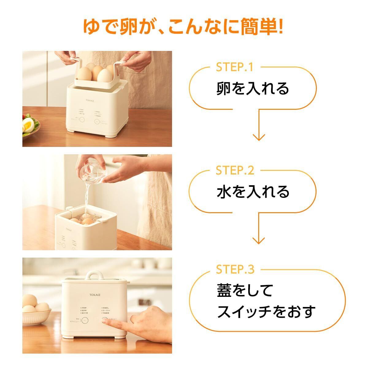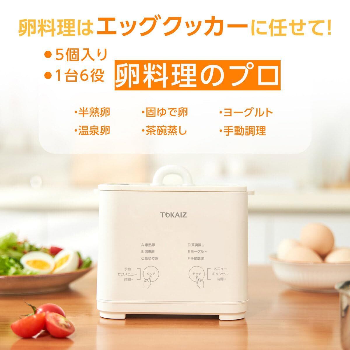 「TOKAIZ ゆでたまごメーカー」は、手軽さと機能性を兼ね備えた調理器具。毎日の食卓を彩り、家族全員が笑顔になるような美味しい卵料理をお手伝いします!