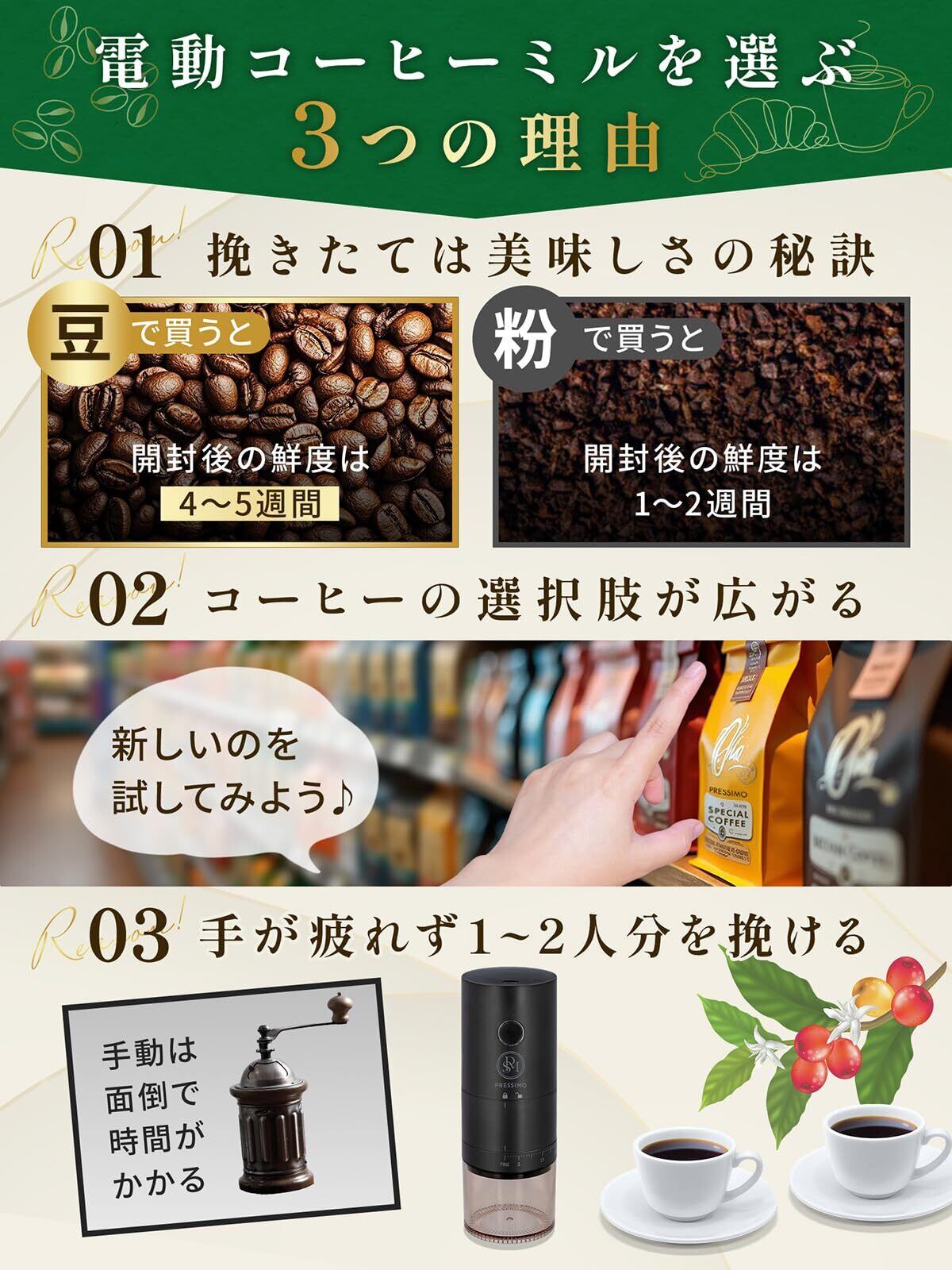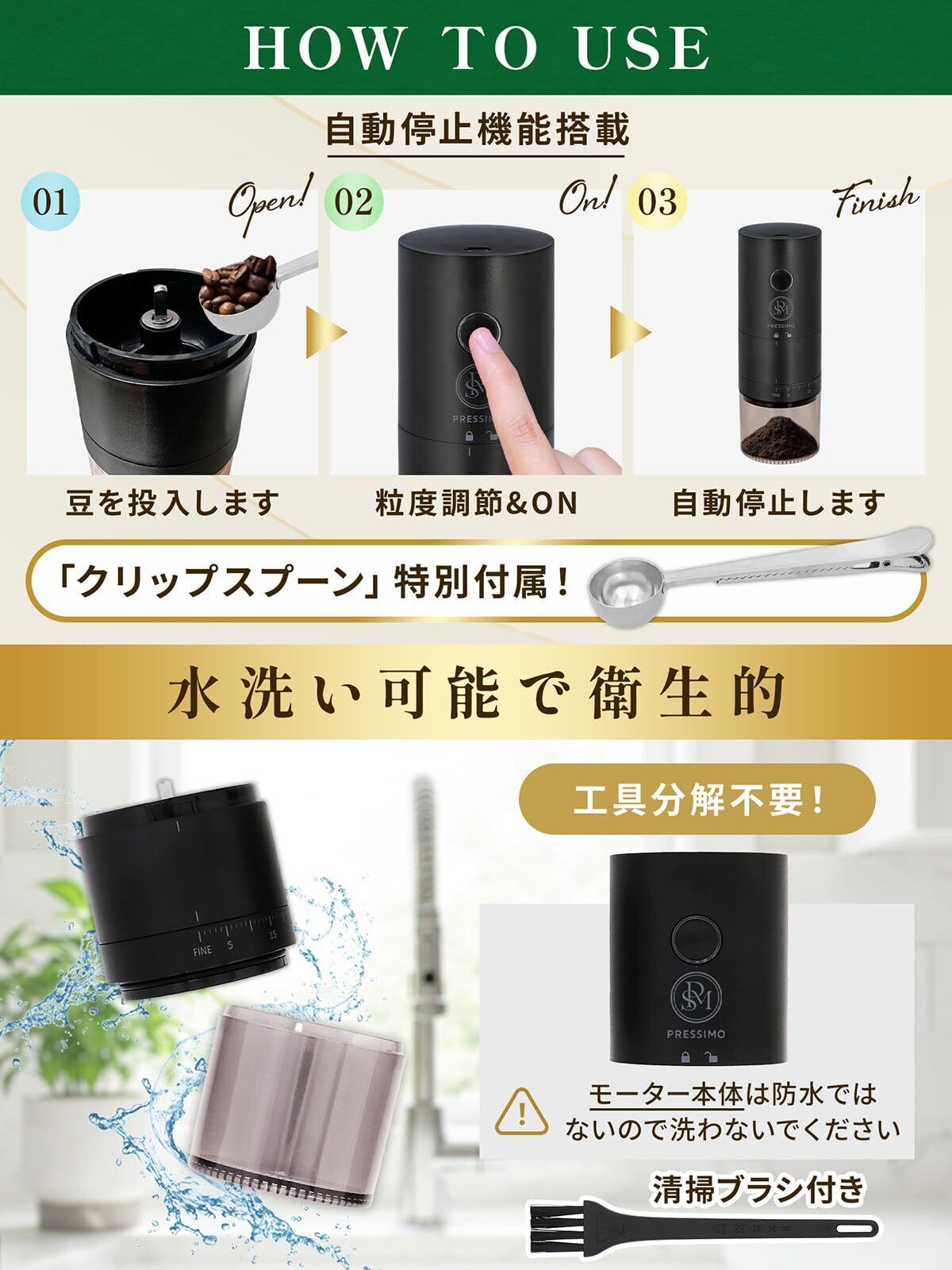 「電動コーヒーミル」は、便利さと高性能を兼ね備えた逸品。毎日のコーヒーをさらに美味しく、おしゃれに楽しむために、ぜひお試しください。