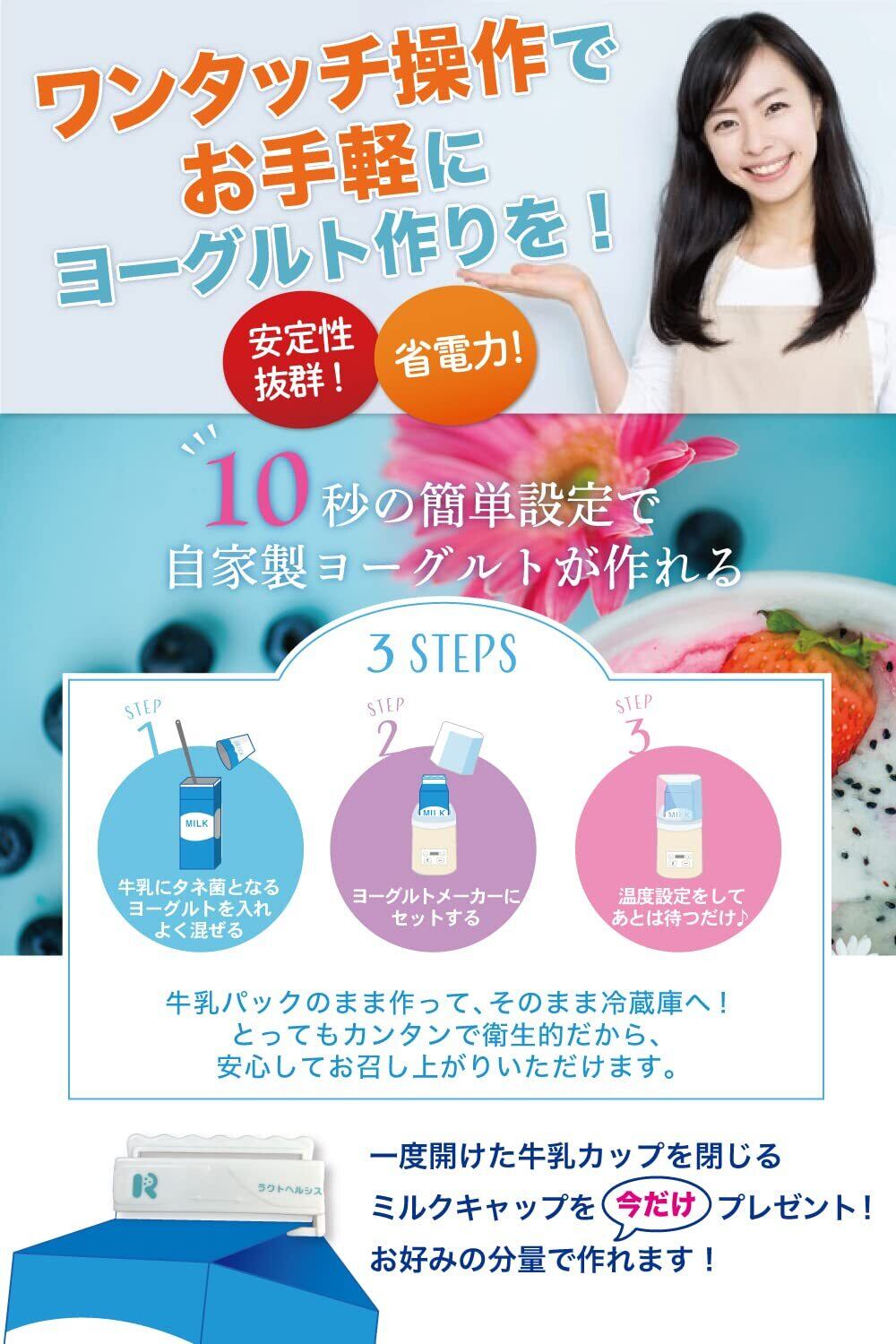 \【◆ヨーグルトメーカー】【節電仕様】【牛乳パック】【甘酒】【カスピ海】【豆乳】【R-1】【ギリシャヨーグルト】【ラクトヘルシス】【ステンレススプーン付き】【ホワイト】/毎日の健康を手軽にサポートする新しいパートナーが登場です!