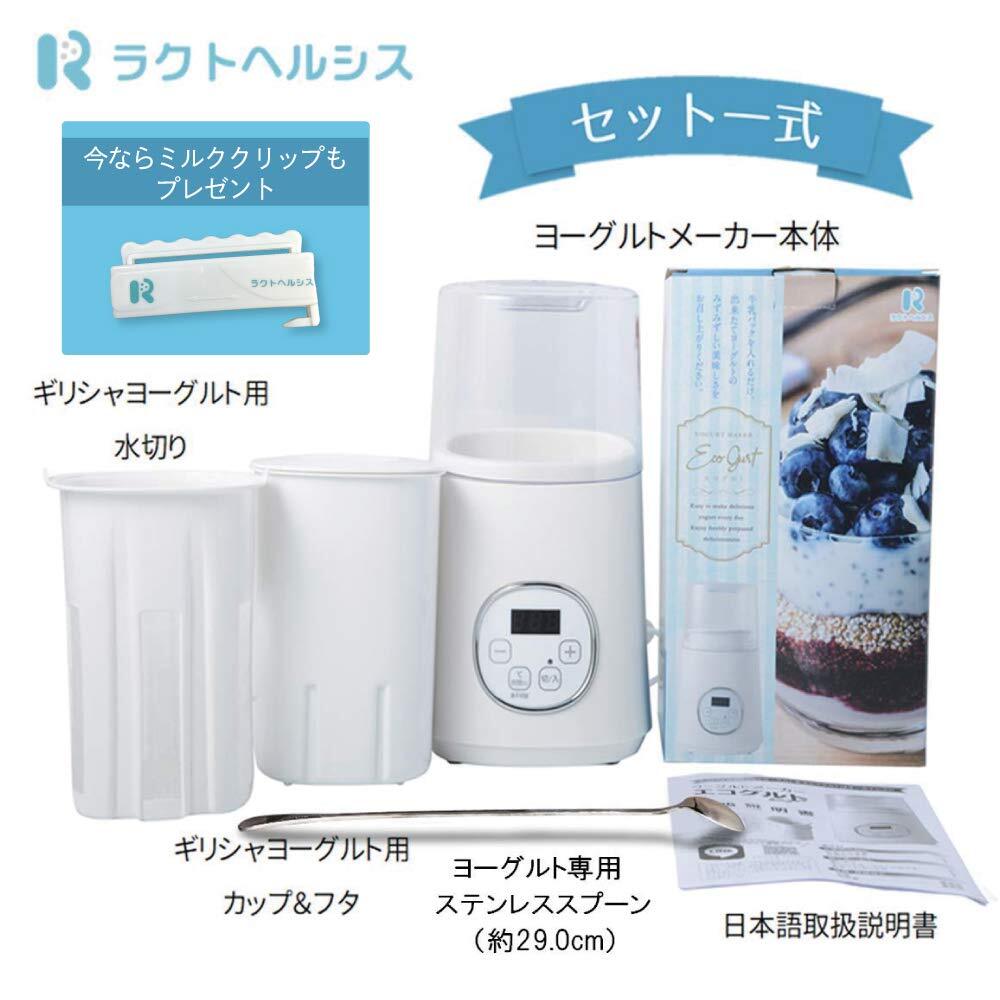 ヨーグルトメーカー 【節電仕様で毎日エコにヨーグルトを】 ステンレススプーン付き 牛乳パック 甘酒 カスピ海 豆乳 R-1 ギリシャヨーグルト ラクトヘルシス (ホワイト)