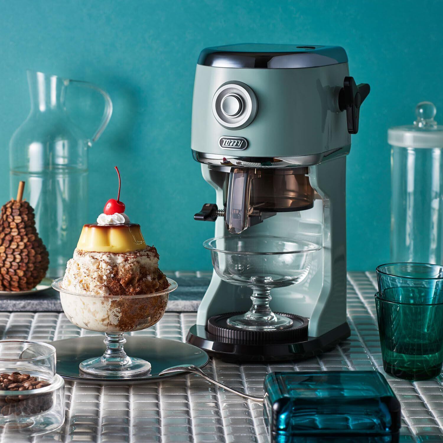「Toffy コンパクト電動ふわふわかき氷器 K-IS14」は、冷凍フルーツやハーフ氷、さらにはミックス氷やジュース、ミルク氷を使って、自宅で本格的なかき氷を簡単に作れる優れた商品です。手軽にスイッチを入れるだけで、ふわふわ・サラサラ・シャリシャリの3種類の食感を楽しめます!
