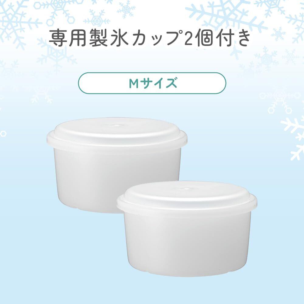 削れる氷の種類 製氷カップ:専用の製氷カップでふわふわな氷が削れる。味付き氷:お好みのジュースを凍らせて簡単味付きかき氷の完成。冷凍フルーツ:市販の冷凍フルーツを削るだけ。バラ氷:ご家庭で作ったバラ氷や、市販の製氷皿でつくるバラ氷も使用できます。製氷カップMサイズ2個付き。