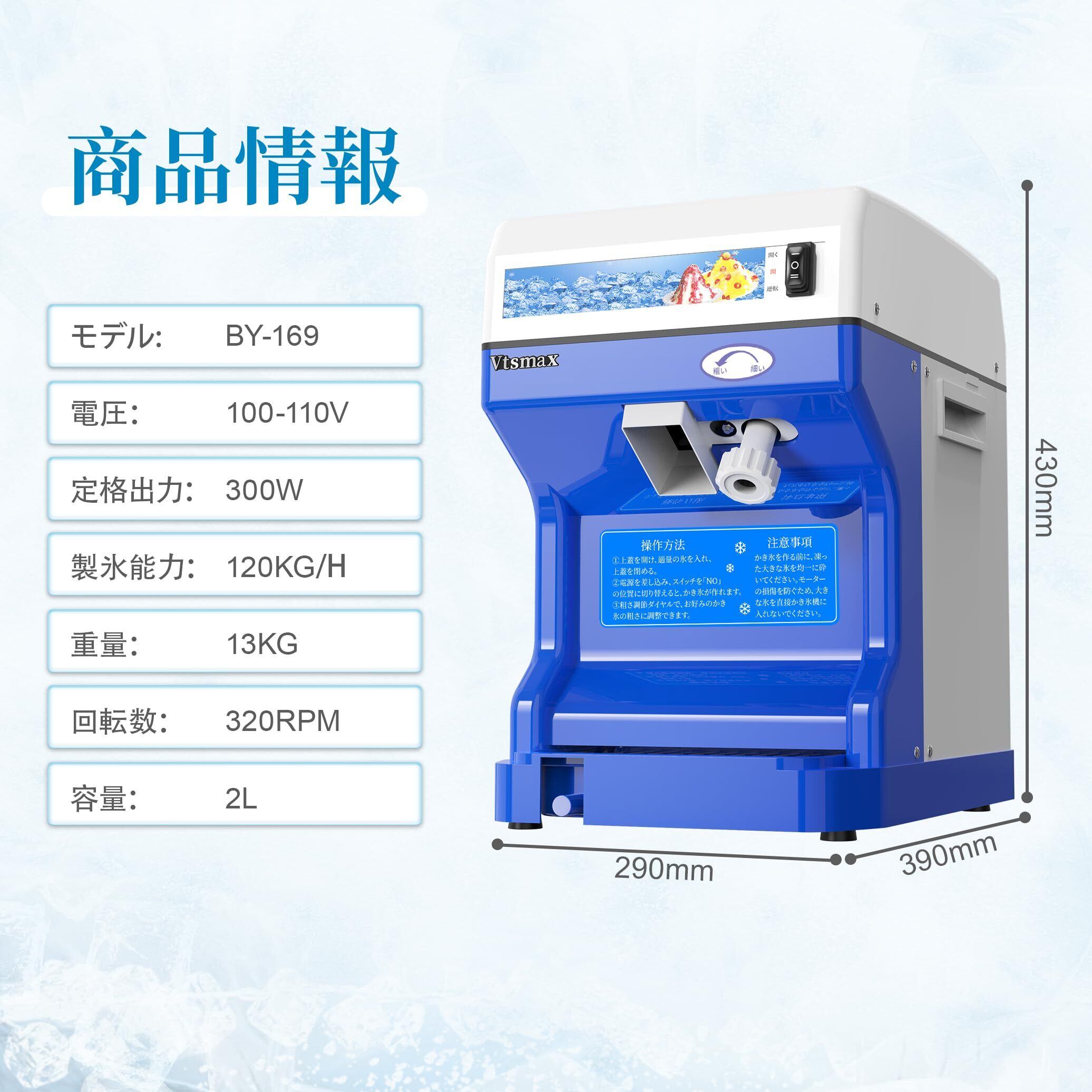 【製品データ】 製品名:電動式 アイススライサー 250w 100-110V 60Hz; 砕氷量:120kg / h; 容量:2L; サイズ:28 * 38 * 43.5cm; 回転数:320r/m; モーター: 250Wの強力な銅コアモーター; プロペラ材質:アルミニウム合金 ·また、お客様の便宜を図るため、アイスショベル*1や排水管*1もご用意しております
