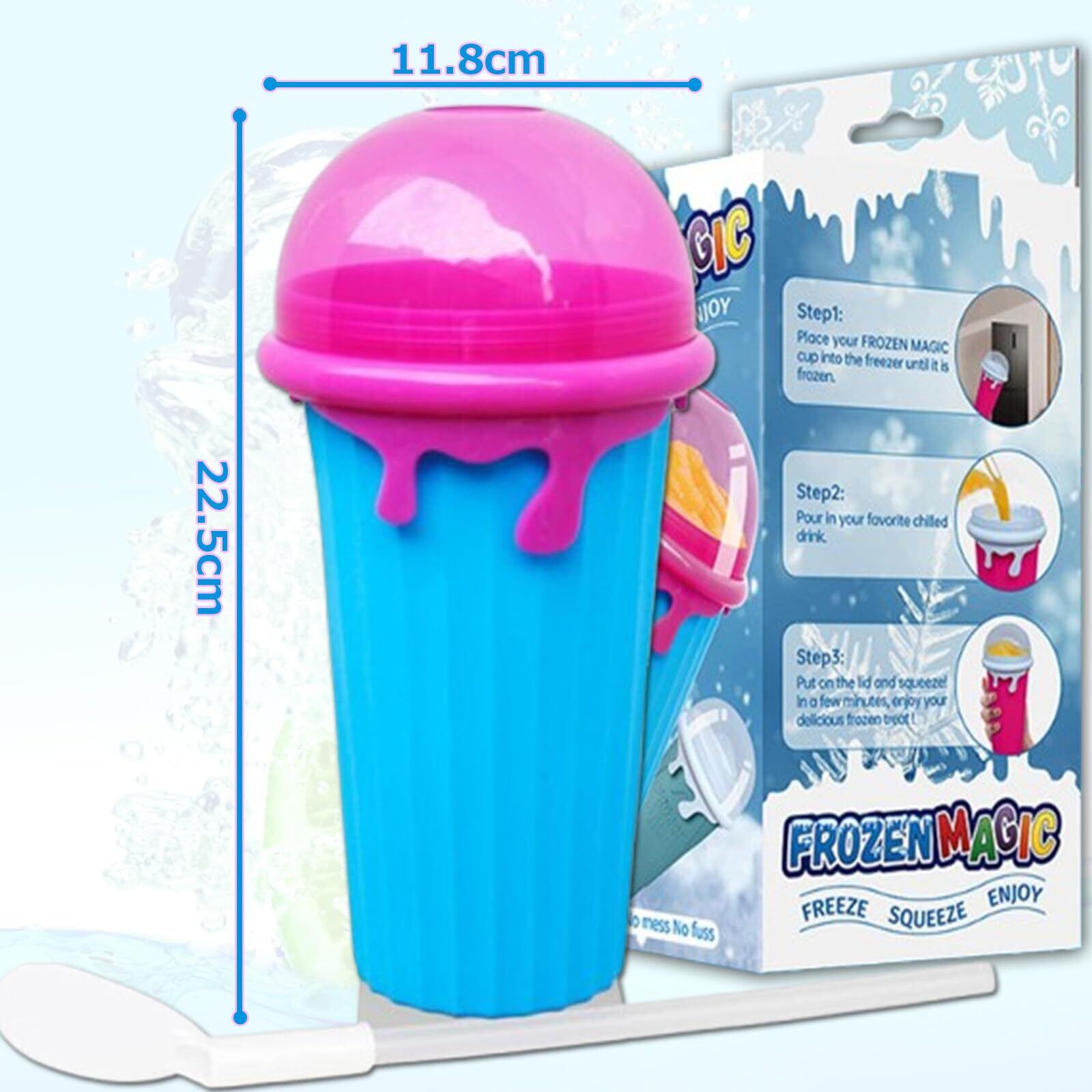 マジッククイック冷凍スムージーカップ 自家製ミルクシェイクアイスクリームメーカー 冷却カップ 二層スクイーズスラッシュメーカーカップ ポータブル冷凍マジックスラッシュカップメーカー 子供、友人、家族用 ブルー