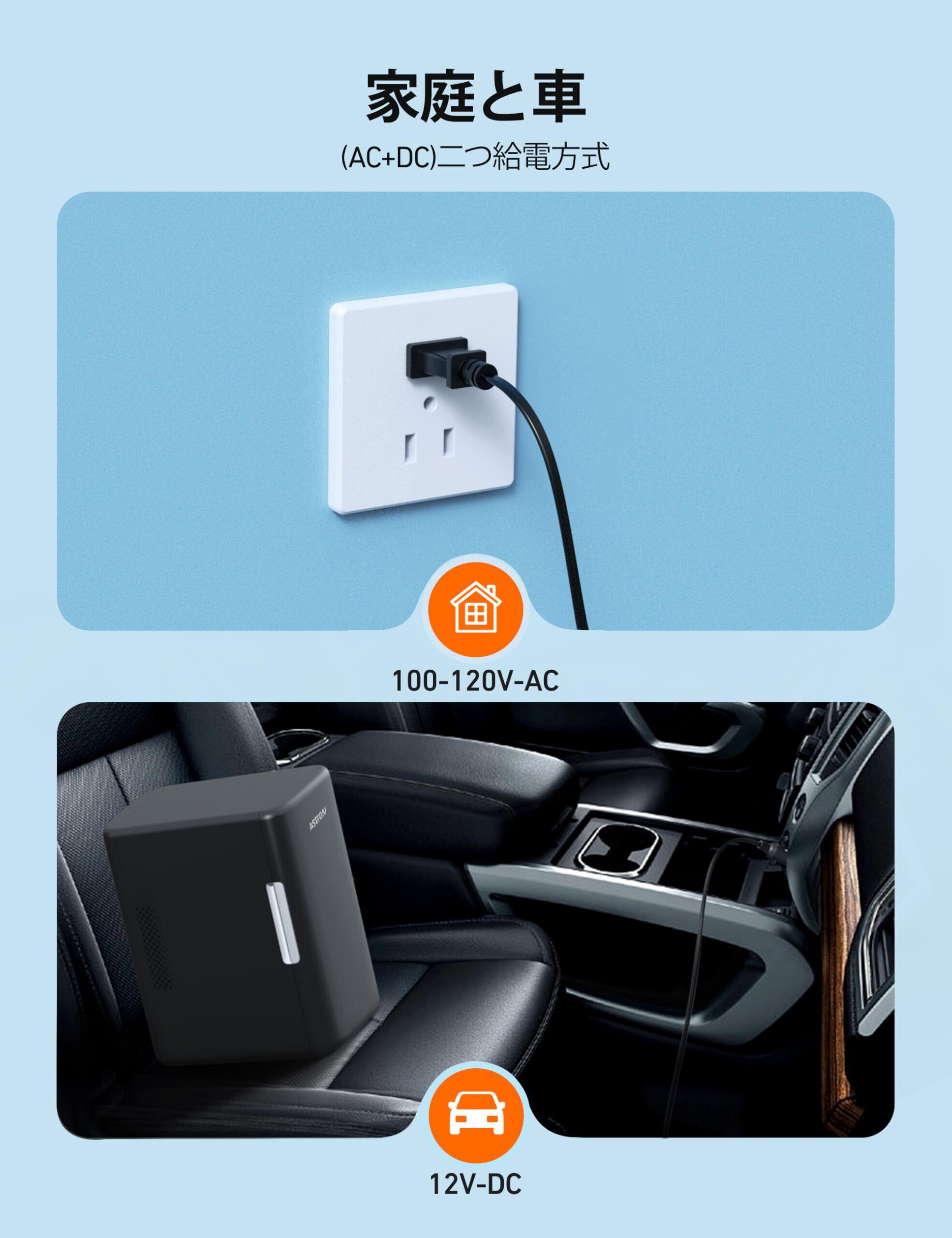 ✨家庭用電源だけでなく、車のシガレットソケットでも使用できるダブル電源式設計。キャンプやドライブのお供にもぴったりで、どこでも好きな時に冷たい飲み物や温かい食材を楽しむことができます。