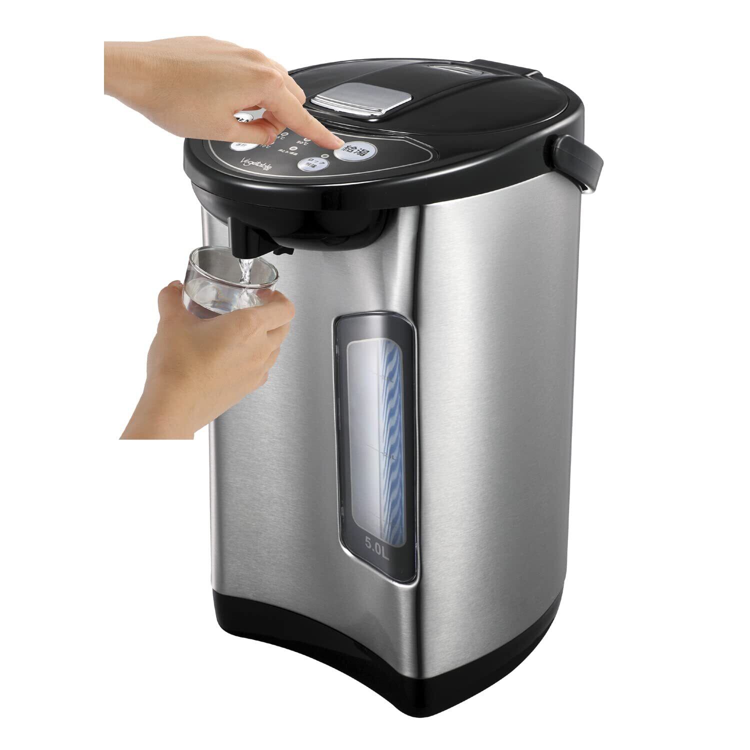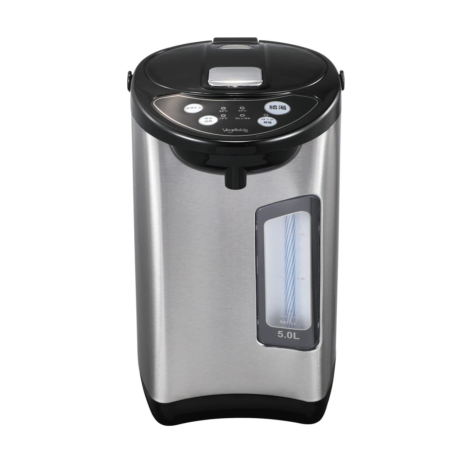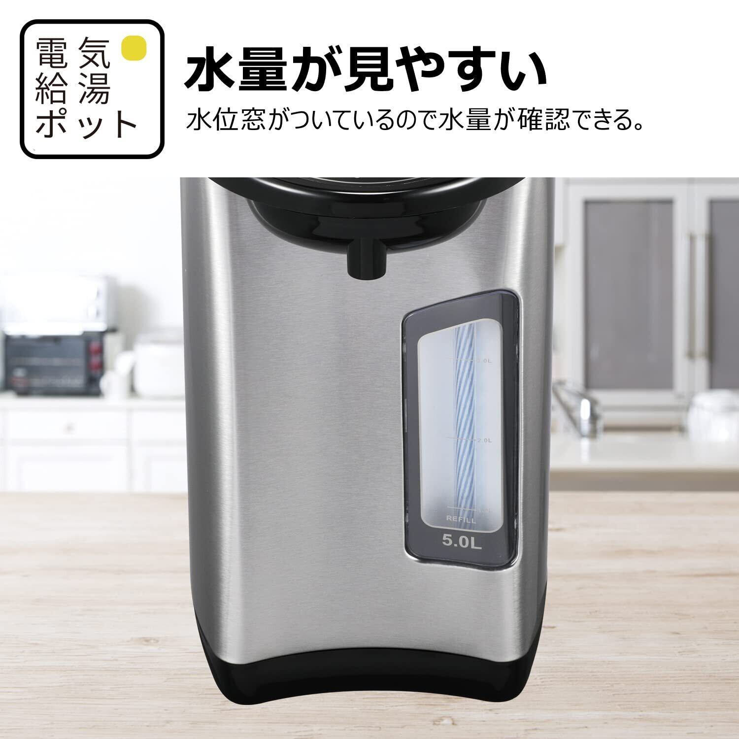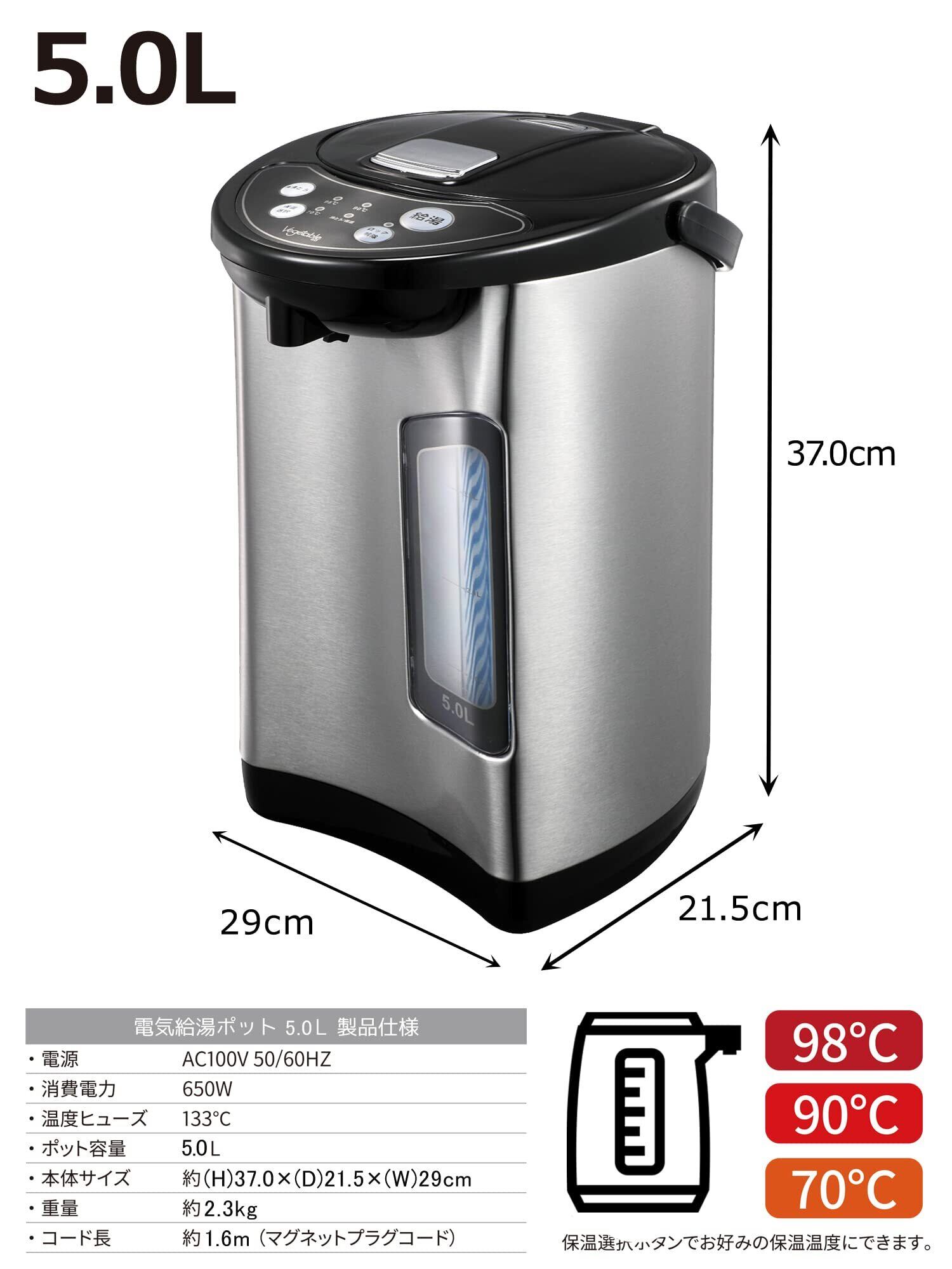 [東京Deco] 電動給湯ポット 5.0L 保温3段階 空焚き防止 ブラック/シルバー 電気ポット [シンプル操作でワンタッチ給湯] 360度回転底 水位窓 安全設計 ロック機能 再沸騰 給湯 節電 ケトル スライドロック カルキとばし 省エネ 過昇温度防止 g004