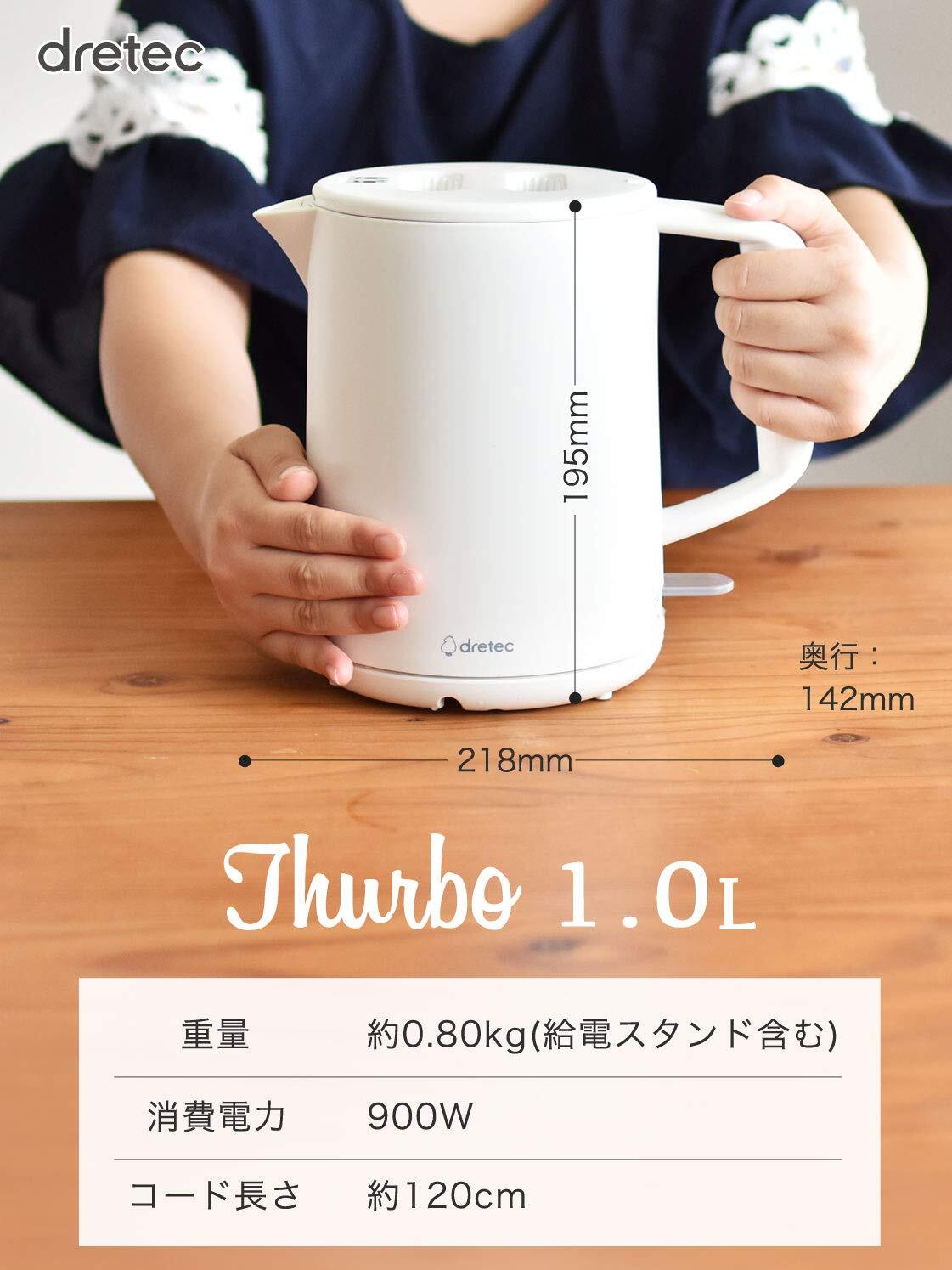 dretec(ドリテック) 電気ケトル 1.0L 900W 小型 軽量 ハイパワー 操作簡単 自動電源オフ 空焚き防止 タルボ ポット 湯沸かし シンプル やかん おしゃれ ホワイト 白