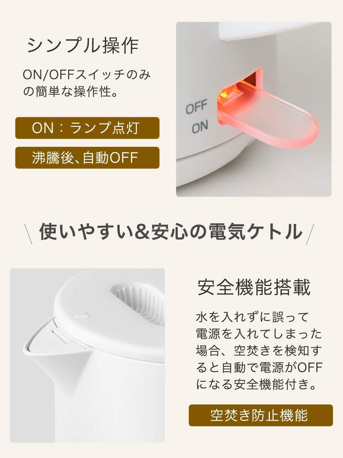 ✨自動電源オフ機能や空焚き防止機能を備えているため、安心してご使用いただけます。お湯が沸騰したら自動で電源が切れるため、手間いらずで安全にお湯を用意できます。