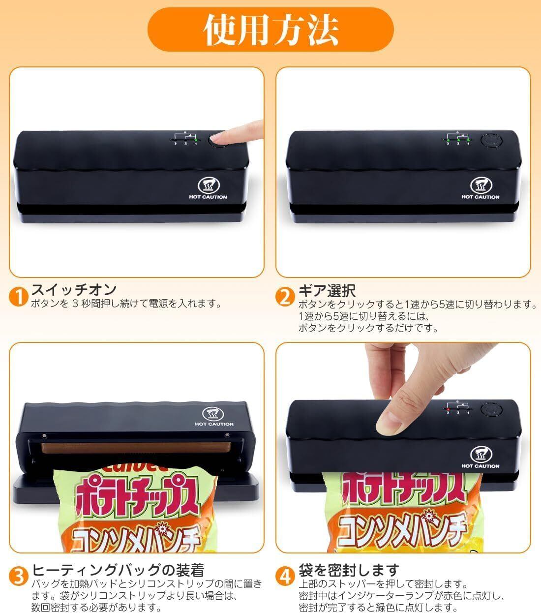 さまざまなバッグに対応:5段階調節で、それぞれ厚袋、普通袋、極薄袋に対応している。ギア1が最も薄く、ギア5が最も厚いです。食品や果物を密封して保存するのに役立ちます。