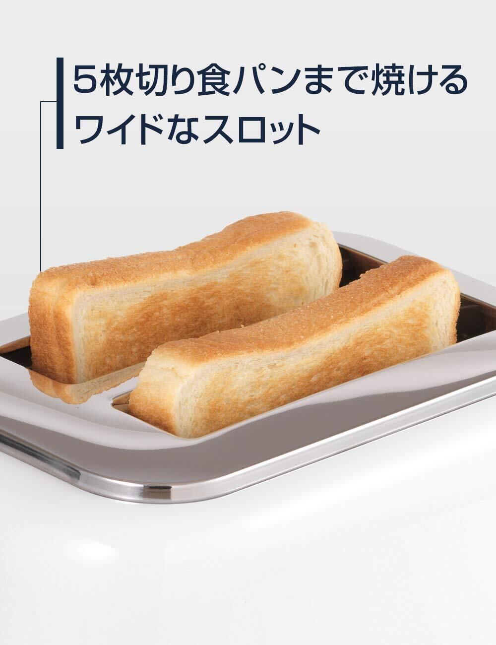 10枚切から5枚切食パンに対応。パンは厚みにかかわらずスロット中央に配置され、均一に焼けます。