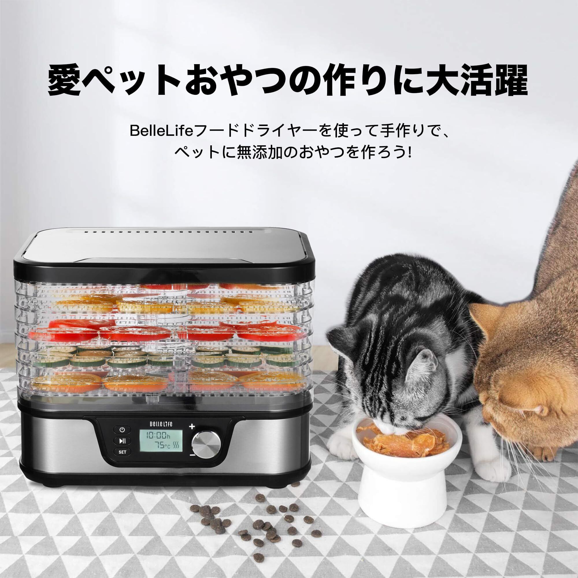 「BelleLife フードドライヤー」は、簡単にドライフルーツやドライ野菜を作成できる理想的なアイテムです。無添加のおやつを自宅で手軽に楽しめ、健康志向の方にもぴったりです。