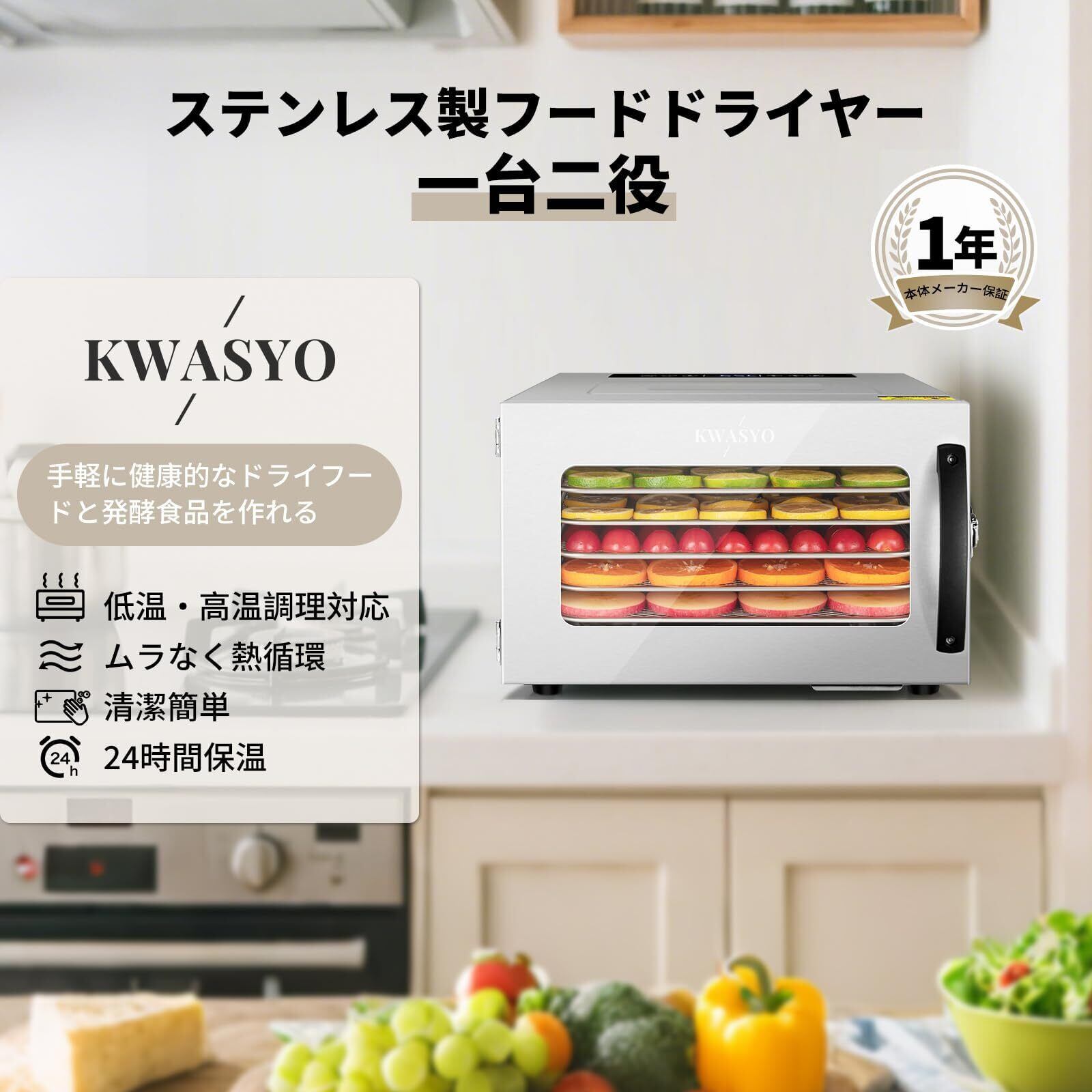 Kwasyo 6層フードドライヤー ステンレス鋼製食品乾燥機 ドライフルーツメーカー 家庭用 30~90℃幅広い温度制御 タイマー付き 24時間低温35℃保温可能 400W 無添加 野菜 果物 肉 乾燥機 低温発酵可能 ジャーキー 干し芋 手作り レシピ付き