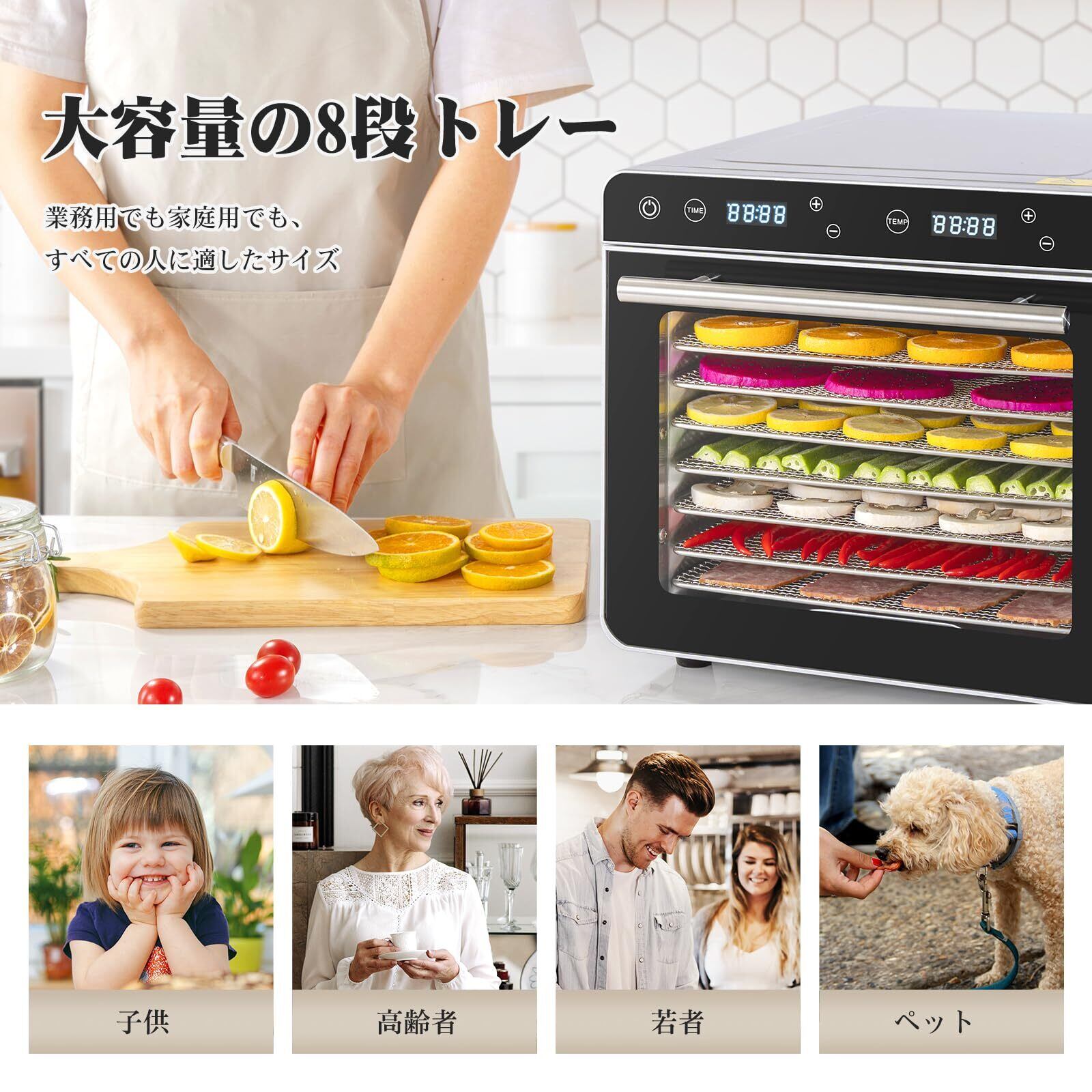 「Kwasyo 8層ステンレス鋼製フードドライヤー」は、家庭での食材を存分に活用し、健康的なライフスタイルを実現する頼れるキッチンアイテムです!