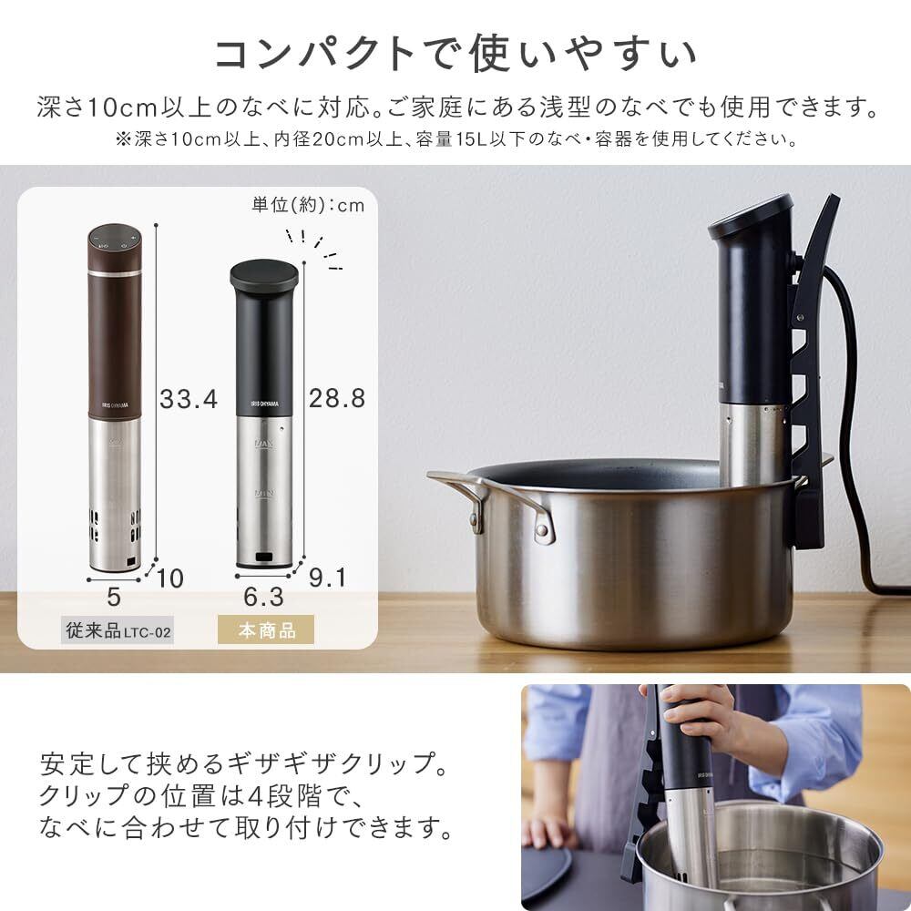 【リニューアル】 アイリスオーヤマ 低温調理器 スリム 浅型の鍋でも使える スロークッカー IPX6/IPX7 防水 タッチパネル クリップ式 空調理器 自炊 調理家電 ZLTC-04-B ブラック