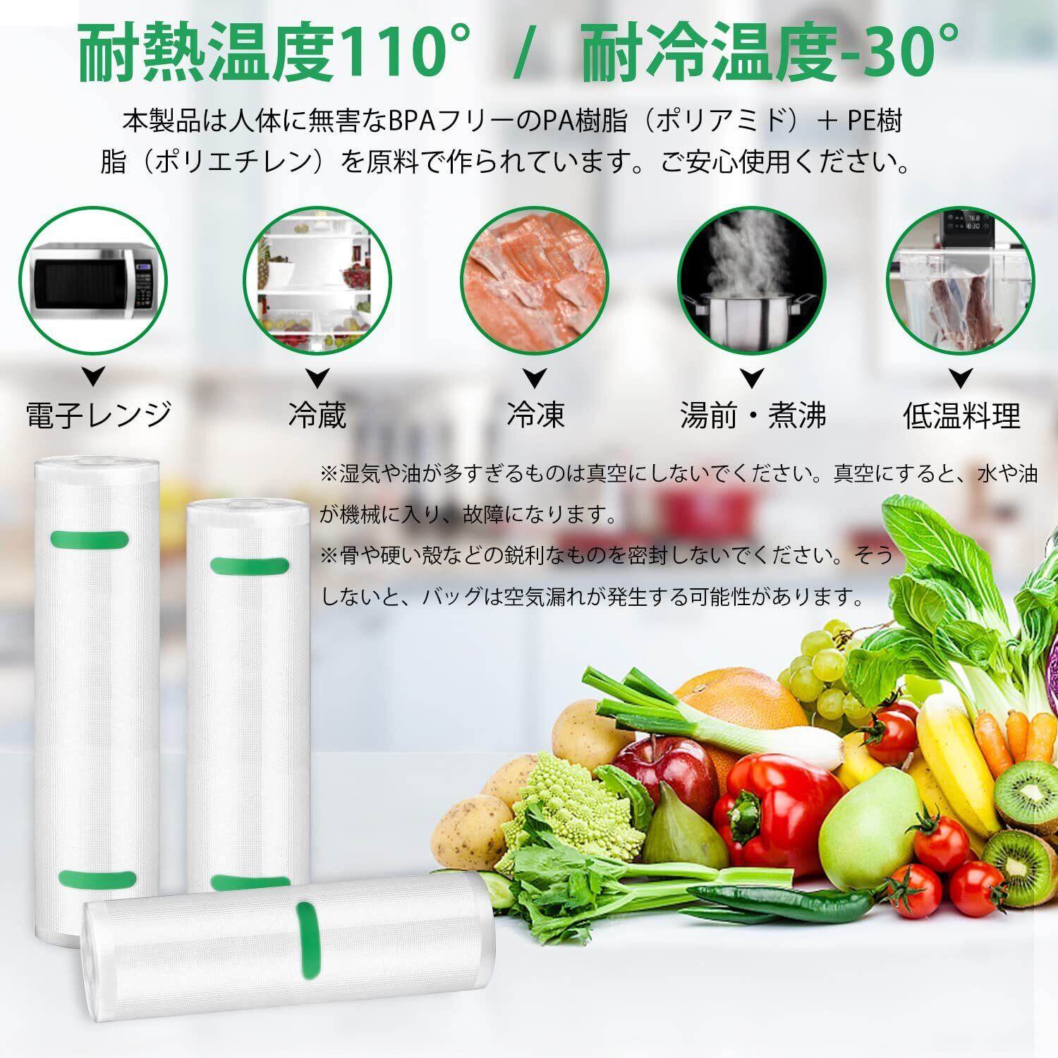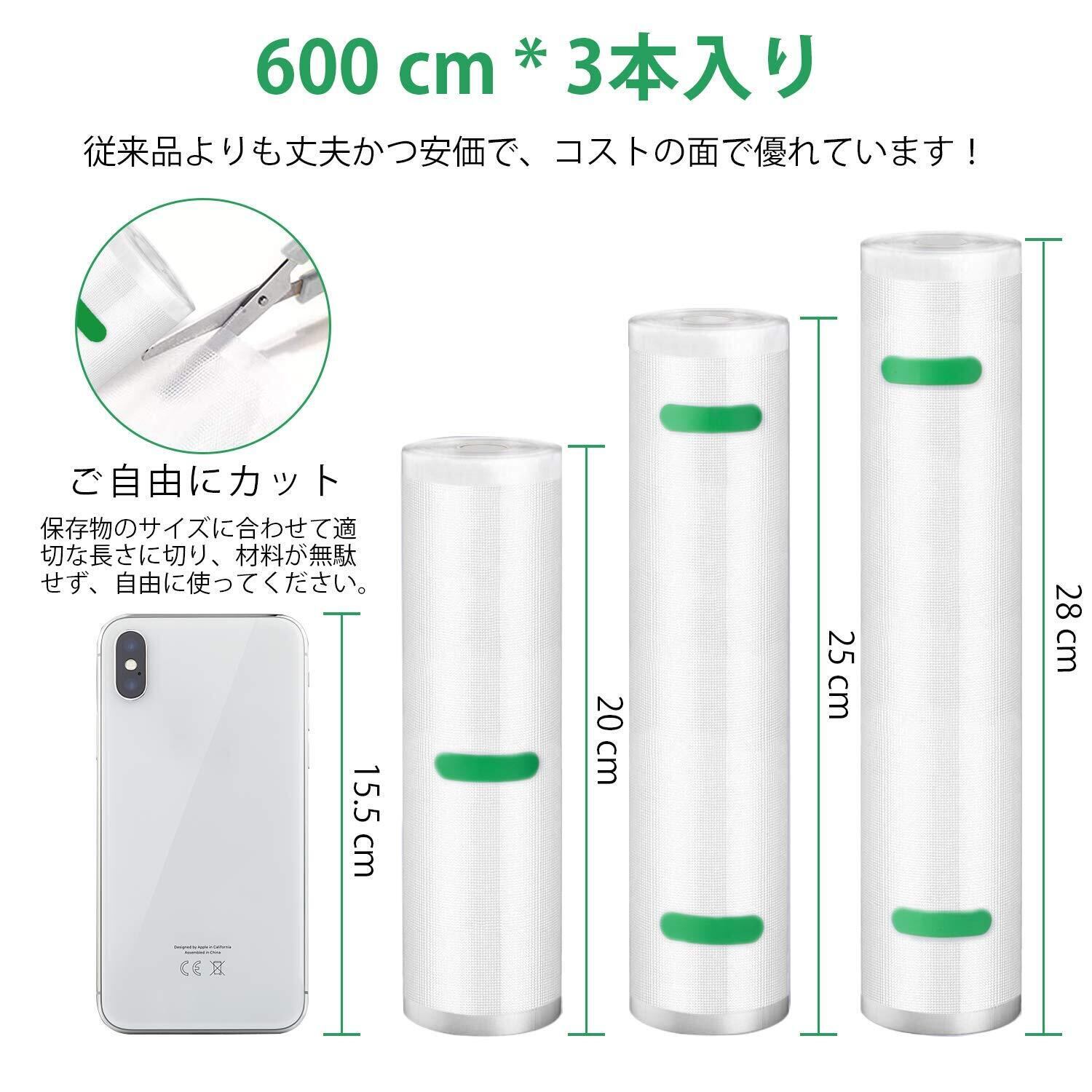 【自由にカットでき】 サイズ:20*600 cm、25*600cm、28*600cm-3本 重さ:約840g 耐熱温度:110° 耐冷温度:-40°、固定された真空パック袋と違って、長さはカッターやハサミで自由に設定することができます。必要とする長さを決めて、無駄に使った材料を減らしましょう。