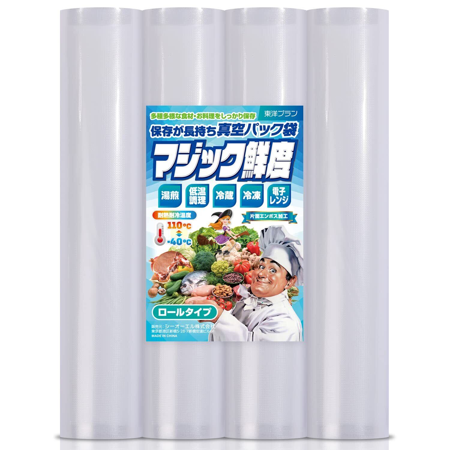[料理講師監修 マジック鮮度] 真空パック 袋 ロール 28*600cm*4本 真空パック機 家庭用 業務用 東洋プラン 包装袋 エンボス 加工 バキュームシーラー 食品保存 低温調理