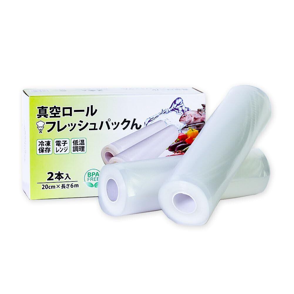 真空パック袋 【20cm×600cm 2本】 真空パックロール フレッシュパックん BPAフリー 化粧箱入り 国内品質検査実施済み 替えロール 真空ロール 電子レンジ解凍 冷凍保存 食品保存 低温調理 家庭用 鮮度長持ち (20cm×600cm 2本)