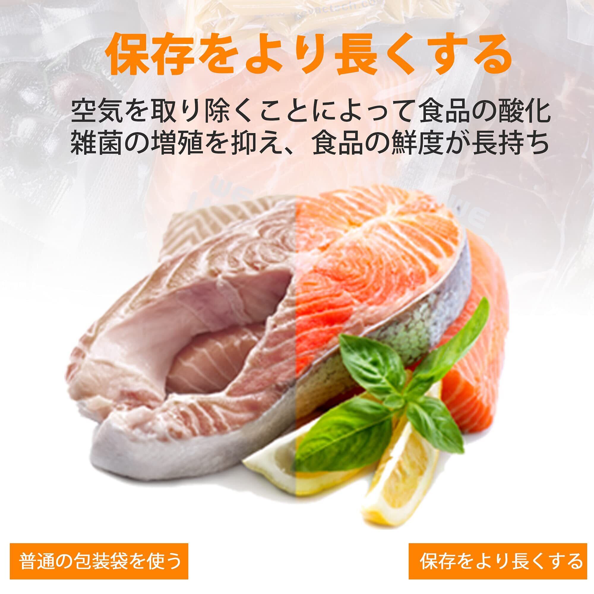 【片面エンボス加工で脱気しやい】WEVAC真空パック 袋は片面エンボス加工で脱気しやすく、特別的なチャネルで最大限に空気を取り除くことができ、フィルムが5層構造になり密閉性が非常に強いです。もう一方は滑らかで透明で中身がよく見えます。ほぼ各家庭用真空パック機対応。(※少数の専用袋が必要的な真空パック機に適用しない)【鮮度長持ち】真空パック袋の中の空気を取り除くことによって食品の酸化、雑菌の増殖を抑え、食品の鮮度が長持ち可能で、匂い移りもなく、食品保存に最適。※食品を保存する際は、真空パックした後、冷蔵庫や冷凍庫にご保存する必要があります。