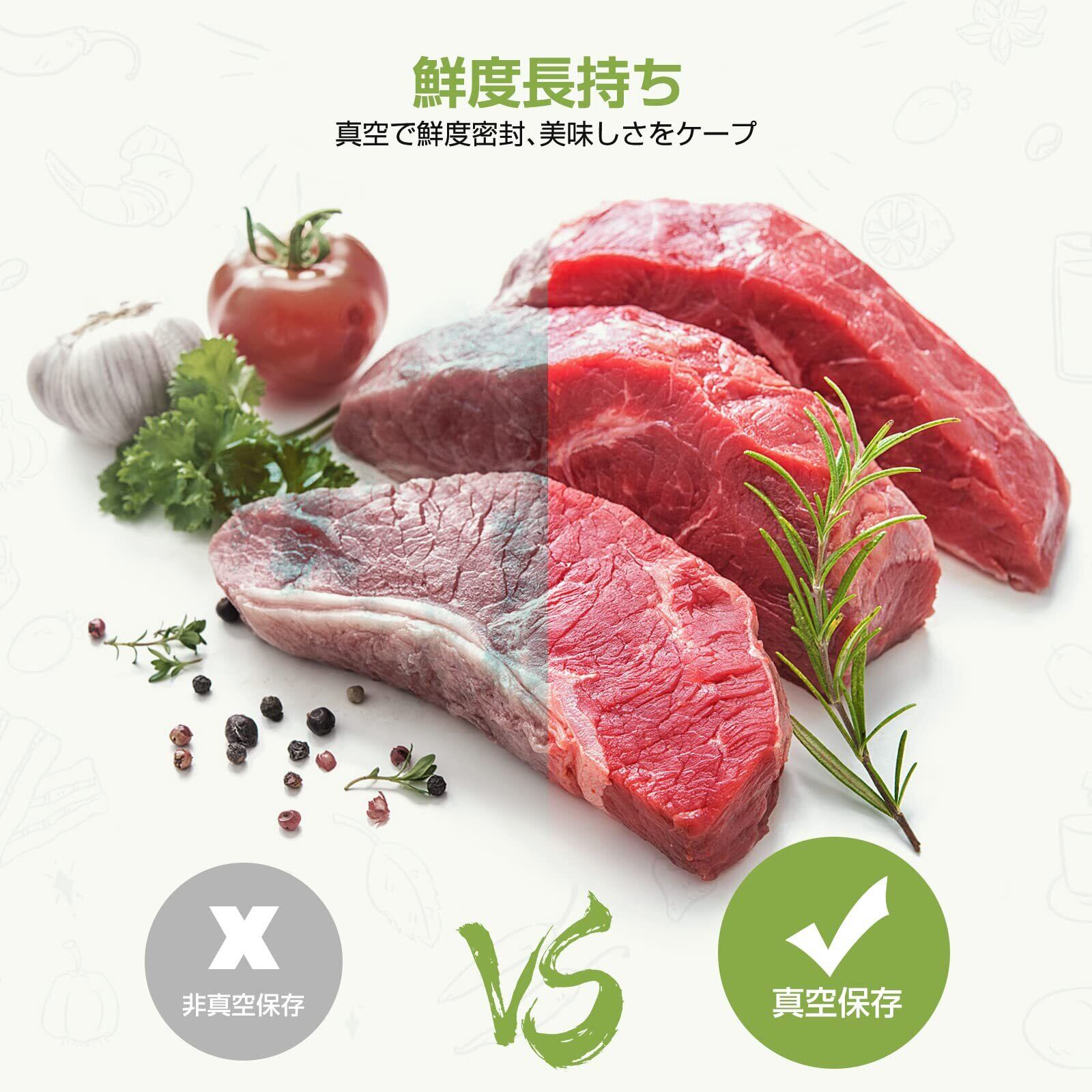 ✨真空パックによって、湿気や空気をシャットアウトし、食品の鮮度を最大限に引き出します。しっかりとした密閉性を実現しているため、食材の味や栄養を逃さずに保存できます。