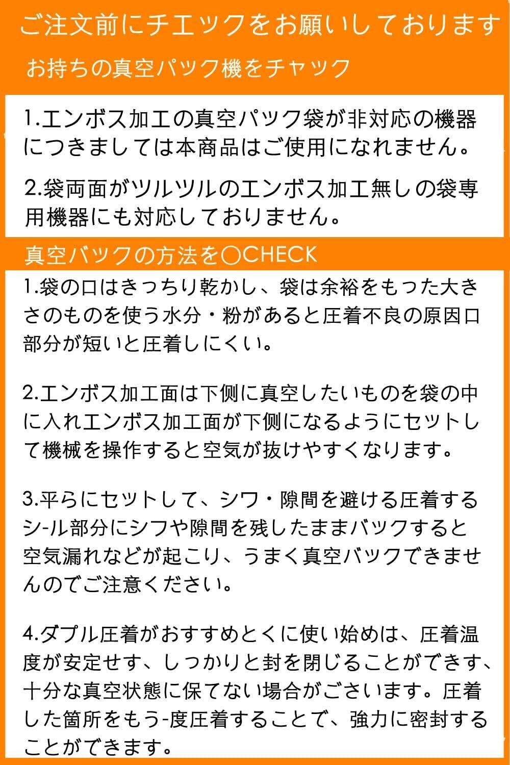 【鮮度長持ち・食材ロス削減】真空パック袋の中の空気を取り除くことによって食品の酸化、雑菌の増殖を抑え、食品の鮮度が長持ち可能で、匂い移りもなく、食品保存に最適、食材ロス削減・コスト効率化を実現でます。※食品を保存する際は、真空パックした後、冷蔵庫や冷凍庫にご保存する必要があります。【アフターサービス・安心購入】商品の管理に最善を尽くしておりますが、お届けした商品について疑問がありましたら、お気軽に弊店までご連絡いただけますようにお願いします。