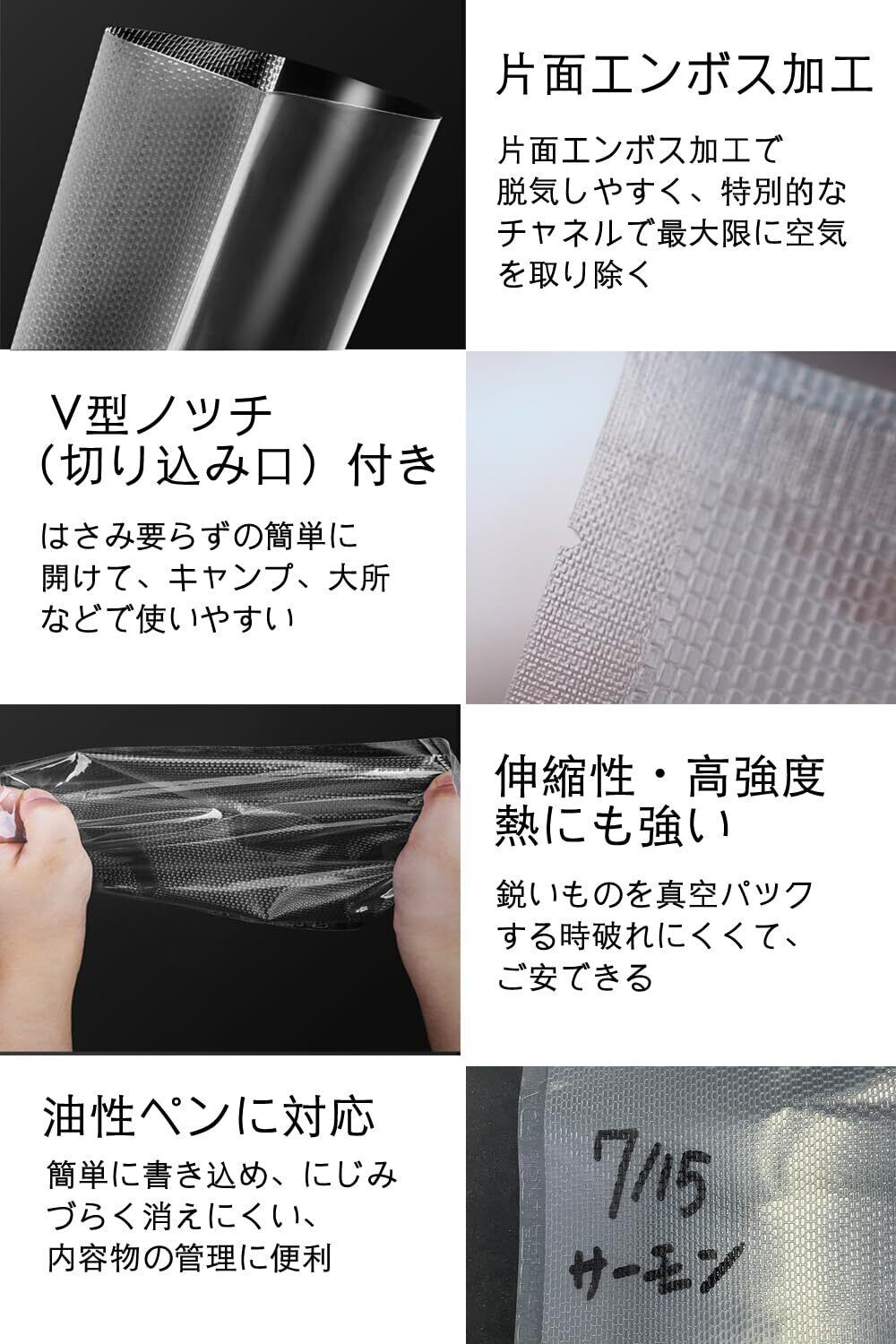✨特別なエンボス加工が施されており、内部の空気を効率よく抜くことで、優れた密閉性を実現しています。食品の鮮度を長持ちさせ、保管時の雑菌増殖を大幅に抑えます。