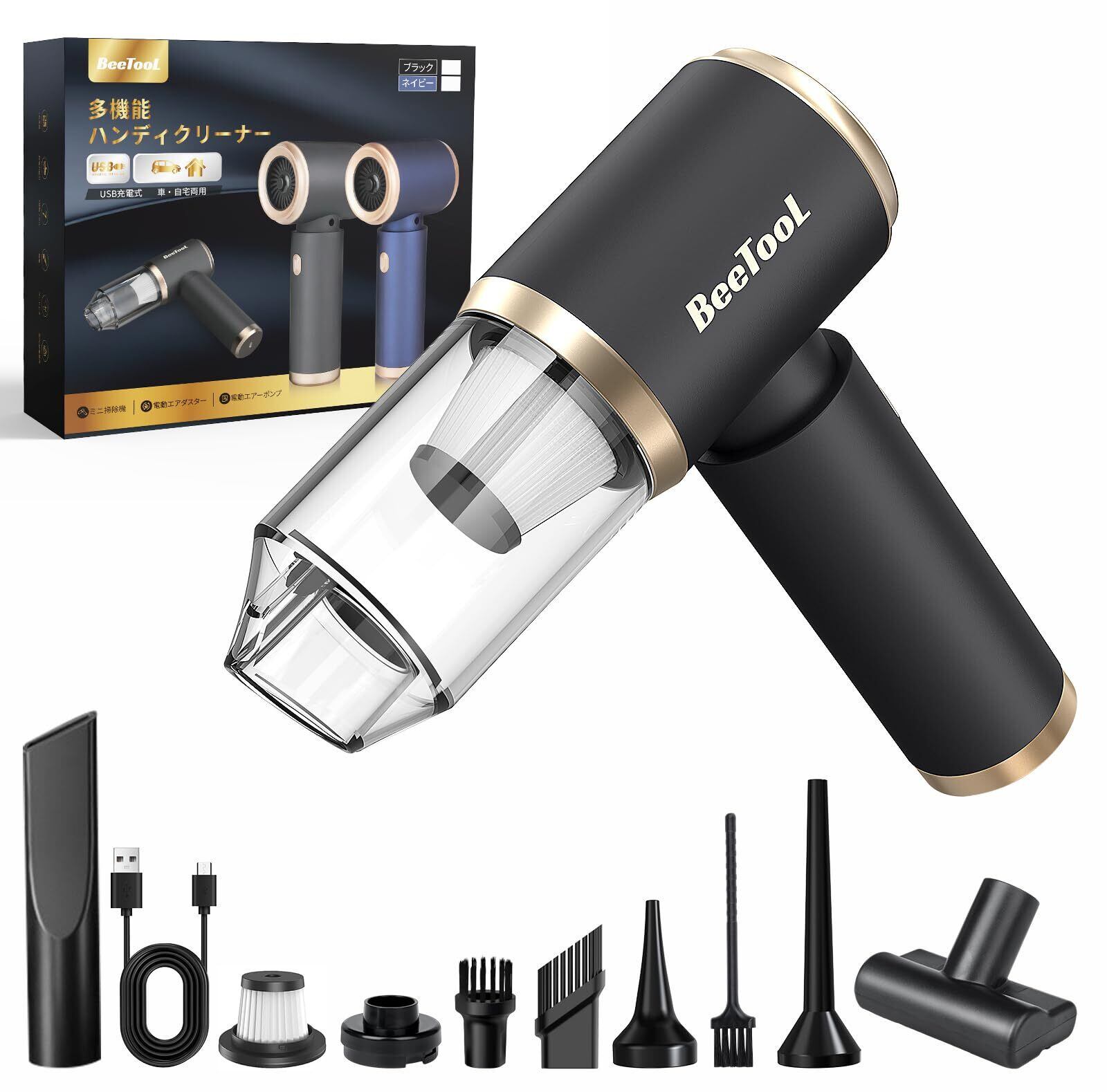 【新登場!十分な吸引力】 吹き飛ぶ 吸い込む 空気入れ 空気抜き。BeeToolのハンディクリーナーはミニ掃除機/エアダスター/電動エアーポンプとして利用可能です。ソファの隙間、キーボード、車内掃除、ネックピロー、エアベッド、エアボート、専用衣類圧縮袋などの場所に使用可能です。7種の交換用アタッチメントを備えて異なる用途に使えて、車内/自宅兼用のハンディクリーナーです。