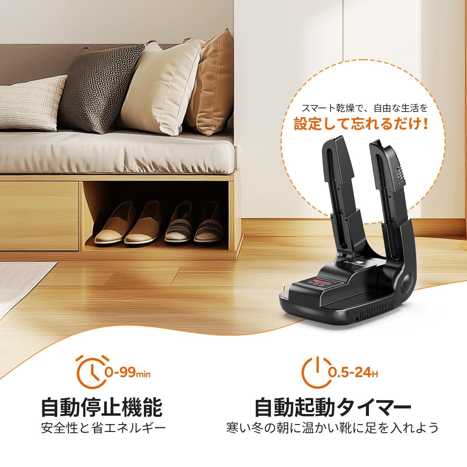 【タイマー機能付き】乾燥機はタイマー(最大99分)という設定があるので、靴の種類や濡れているの程度に基づいて靴の乾燥時間を決定できます、 さらに、予約機能のアクティベーションタイマー(0.5〜24時間)を使用すると、乾燥機の稼働を開始するタイミングを確認し、湿った靴を予約時間の通りに乾いて快適な状態に戻すことができます。