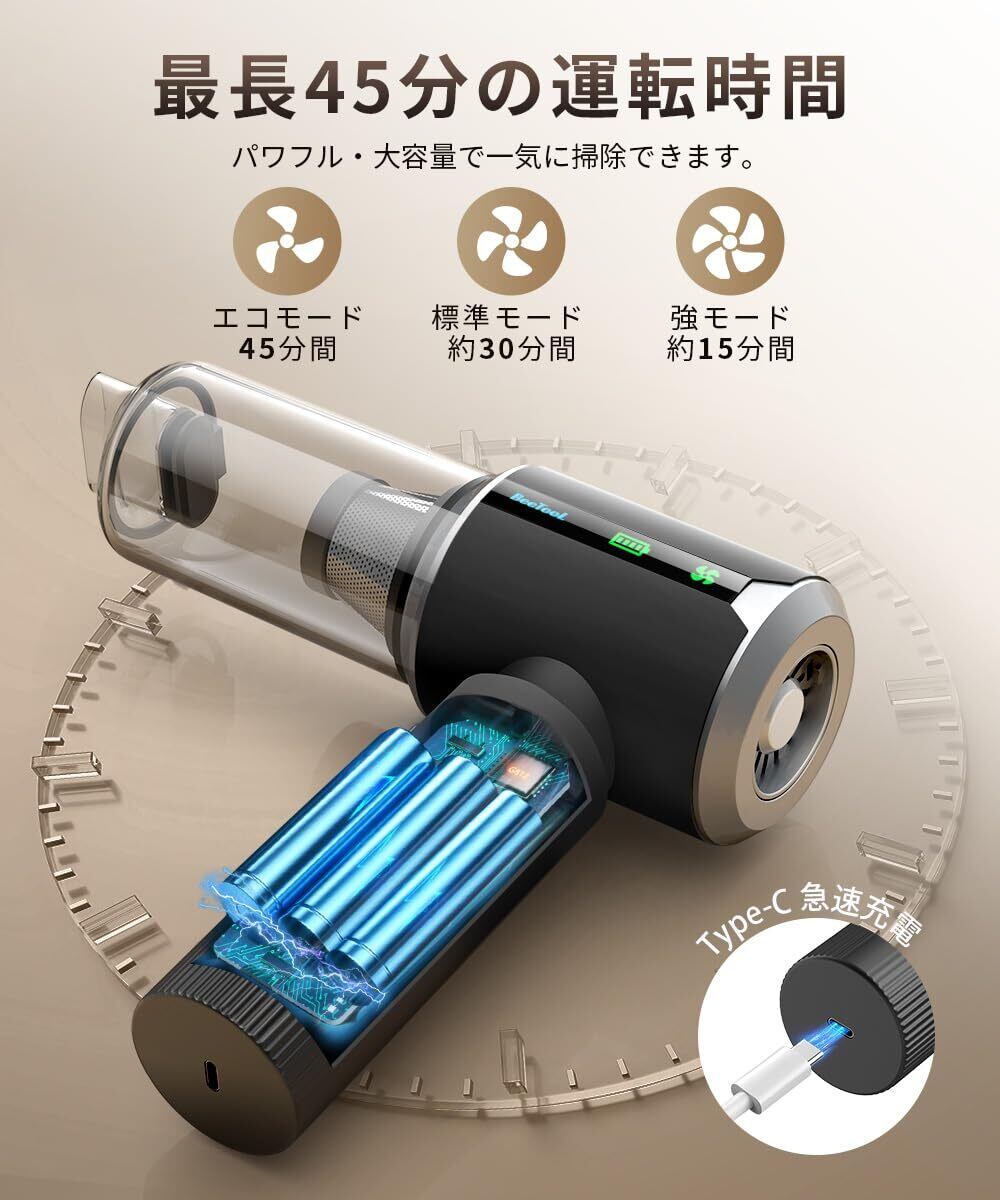 【45分長時間連続稼働!大容量バッテリー!充電自動適応機能!】手軽さと充実のお掃除性能を両立した小型掃除機は、進級版大容量バッテリーを採用し、一回満充電すれば、最長45分間安定したパワフルな電力を供給し、しっかり掃除できます。小型掃除機でお気になる全体を一気に掃除できます!充電自動適応機能が搭載し、より安全になります。急速充電器をご利用いただければ、最速2.5時間でフル充電が可能です。(充電時間は約2.5~4時間でフル充電でき、充電アダプターの仕様により異なります。高品質や信頼できるメーカーの充電器を選んでください。)