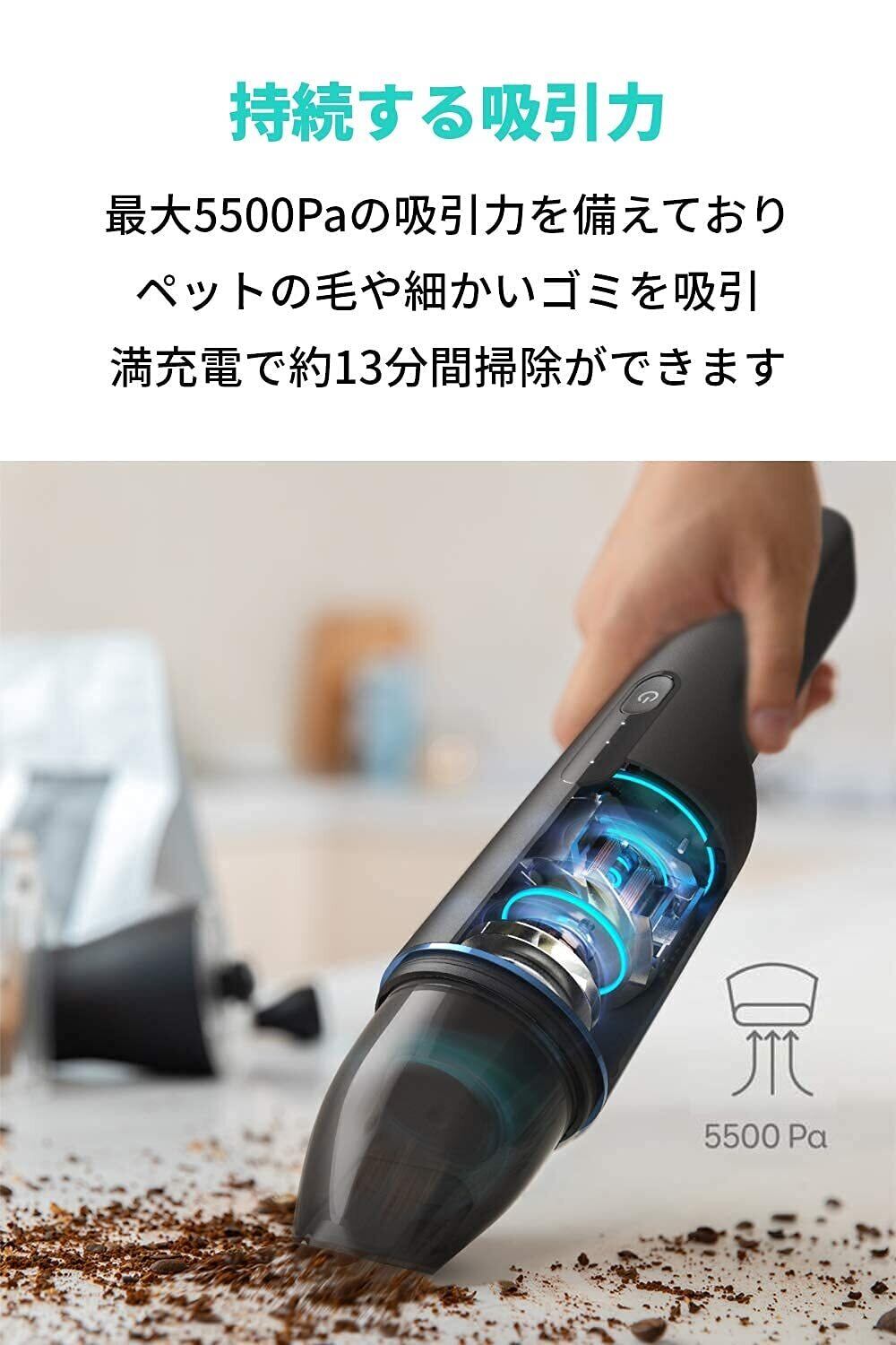 Anker Eufy (ユーフィ) HomeVac H11(ハンディクリーナー)【コードレス/充電式/軽量設計 / 5500Paの吸引力 / USB充電/コンパクトサイズ/車用/コンビネーションノズル付属】ブラック