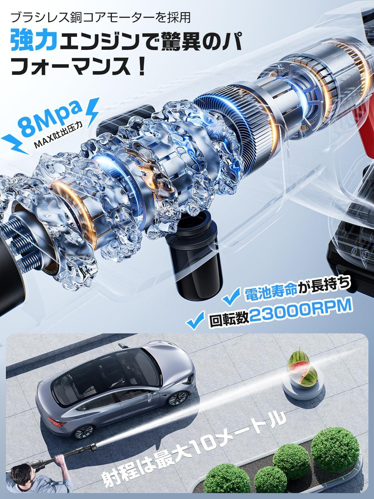 ✨【最大8MPaの強力な水圧でスピーディな洗浄!】