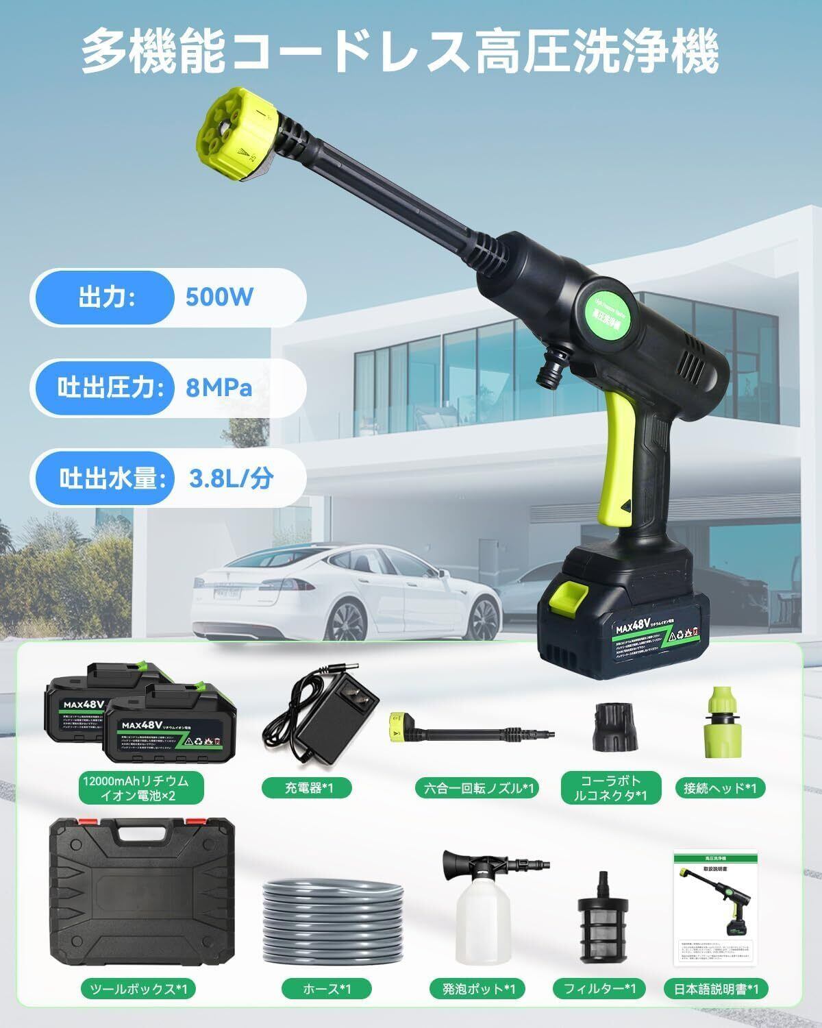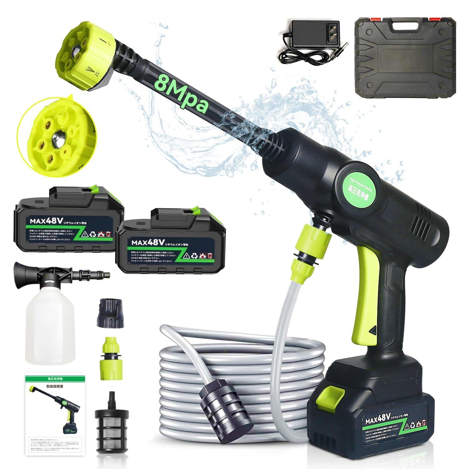 高圧洗浄機 コードレス 充電式 【2025年 ぴかぴか洗浄店推奨】 YWZQ 充電式高圧洗浄機 12000mAhバッテリー2個付き 噴射距離5-10M 最大吐出圧力8MPa 48V 3段階 6in1ノズル 自動吸水 持ち運び便利 収納ケー付き 庭/屋外/階段/ガラス/ブロック塀/玄関/ベランダ/浴室/年末大洗浄/キャンプ 日本語取扱説明書