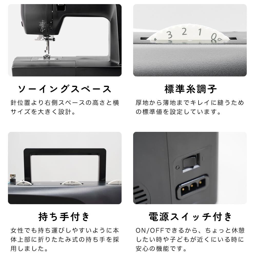 このミシンは軽量かつスリムなデザインで、収納も簡単。家庭での使用はもちろん、場所を取らないため旅行先や小さなお部屋でも気軽に持ち歩けます。必要な時にサッと使える、使い勝手の良い相棒です!
