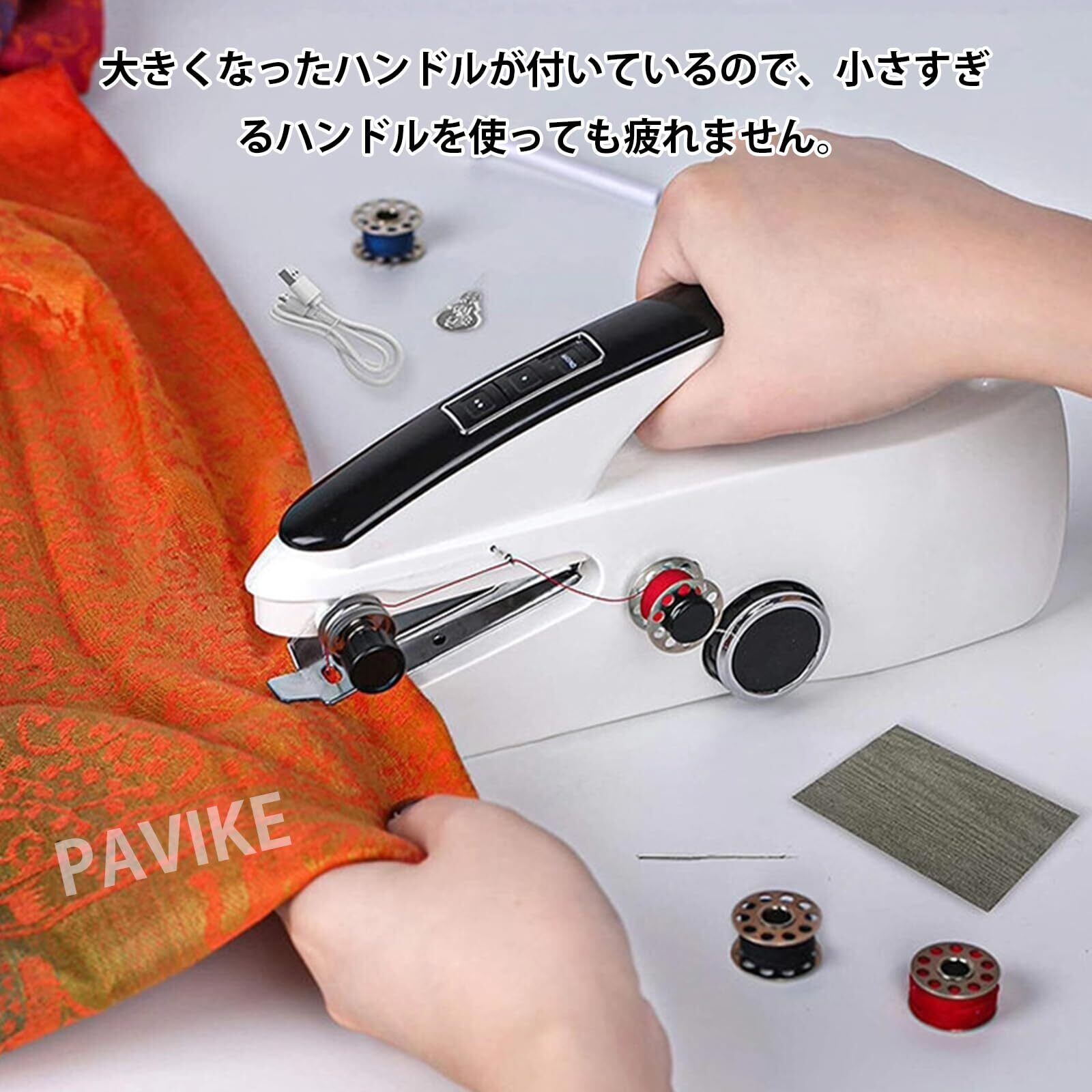 PAVIKE ハンドミシン ミニ電動ミシン ポータブル小型電動ミシン ミニミシン 手縫い機 手持ち式 小型 迅速に補修 衣類、生地、DIY 片手操作 簡単に使える バッテリ駆動